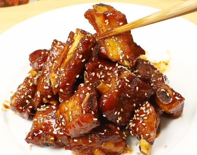 3、糖醋排骨色澤紅亮,口感酸甜適中,咬上一口,滿滿的都是幸福的味道。