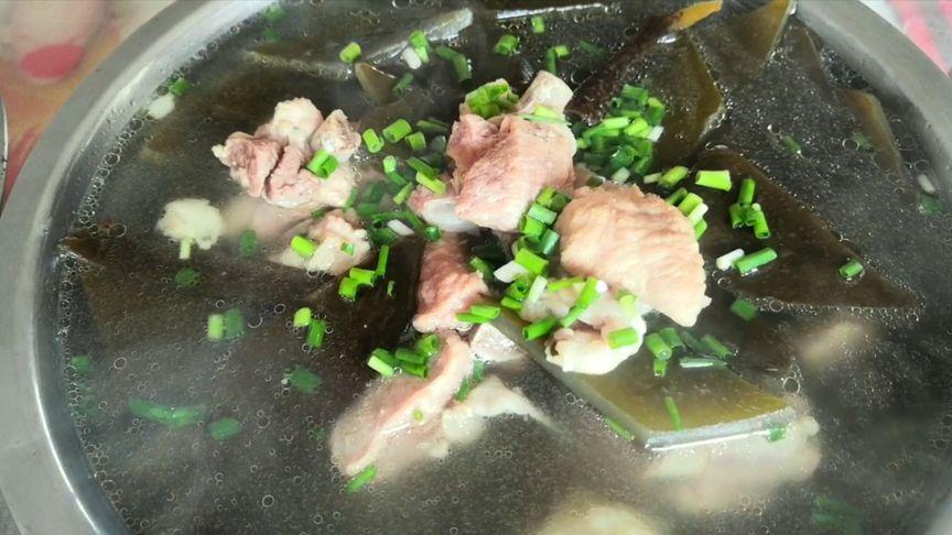 2、倒入適量清水,放入薑片、1 湯匙生抽,大火燒開後轉小火燉煮 1 - 1.5 小時。加入海帶結,繼續燉煮 30 - 40 分鐘,至海帶結軟爛。最後根據口味加入適量鹽調味。