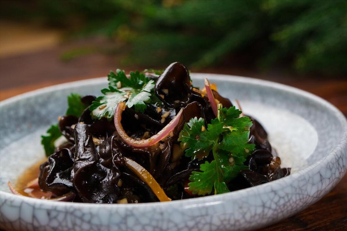 用到:木耳、小米椒、大蒜、香菜、鹽、味精、醋、生抽、蠔油、食用油