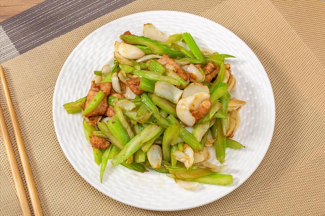 芹菜洗淨切段,百合掰成片狀,放在水中洗淨,小米椒切段。鍋內倒油燒熱後,先把芹菜倒進去翻炒,炒出香味之後再將百合、小米椒一起倒入其中,開始不停翻炒,炒製片刻直至斷生後,加入鹽、雞精還有少量蠔油調味,即可出鍋開喫!