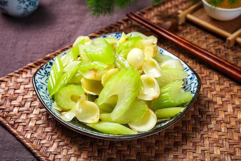 用料:芹菜、百合、小米椒、鹽、雞精、蠔油、食用油