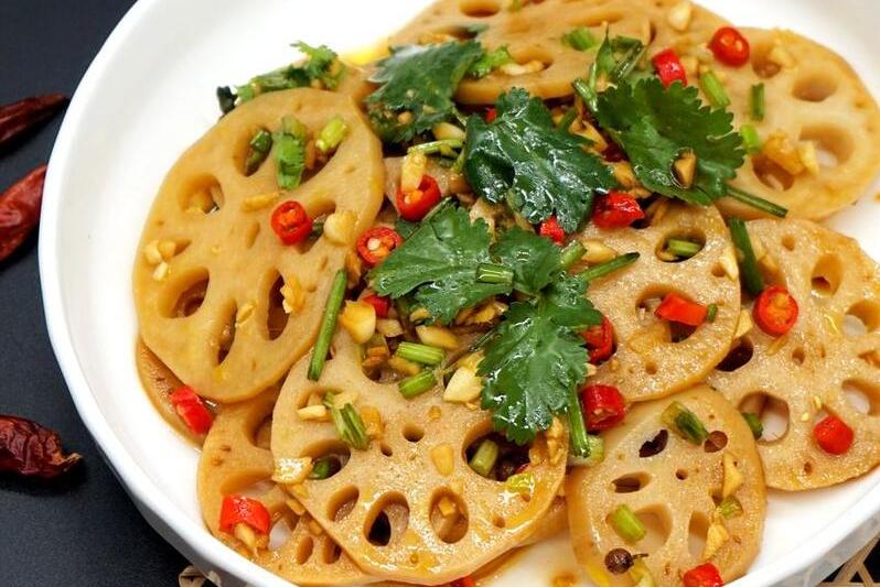 用料:蓮藕、小米椒、白芝麻、蔥花、蠔油、生抽、醋、鹽、雞精、香油、食用油