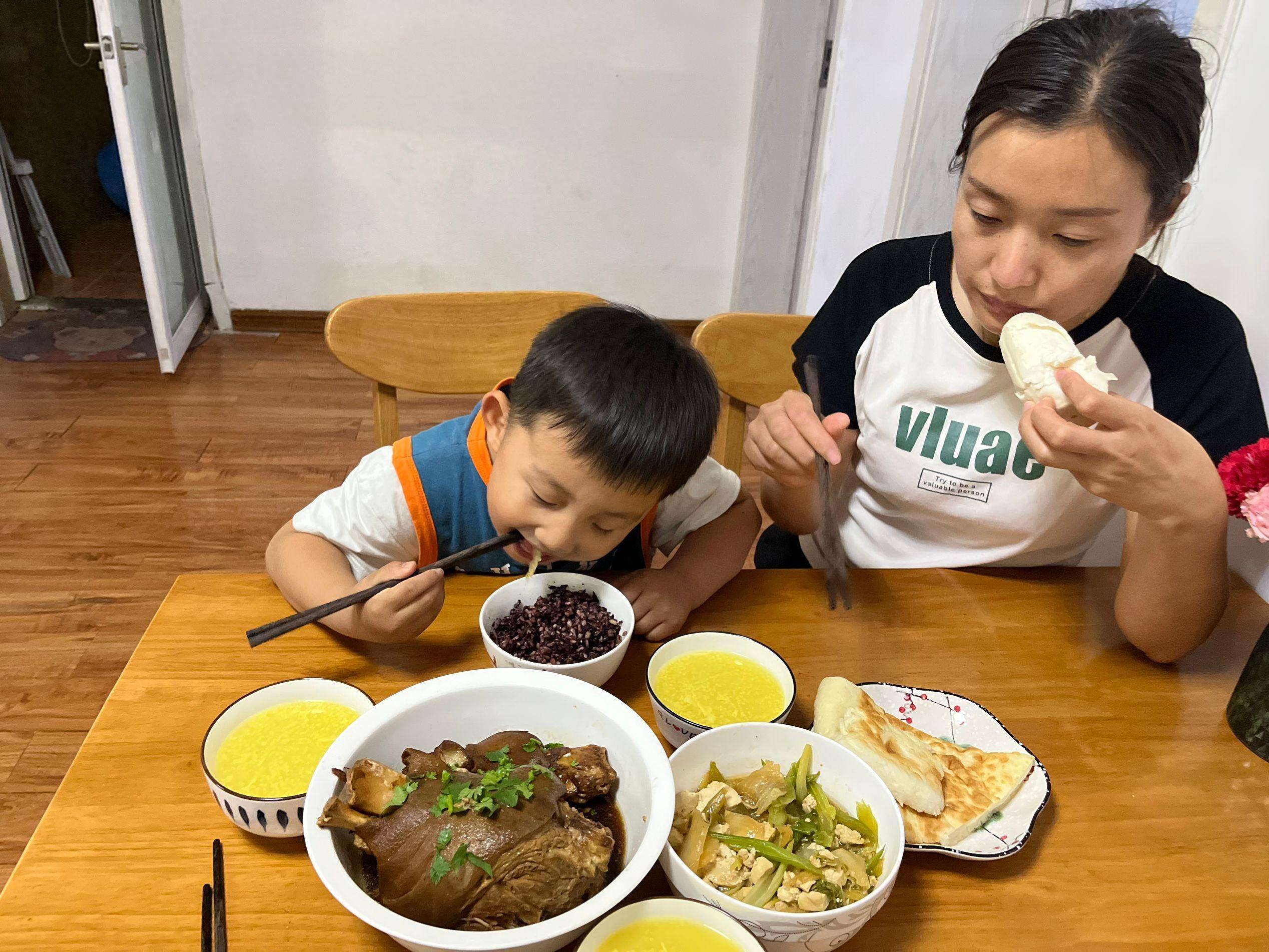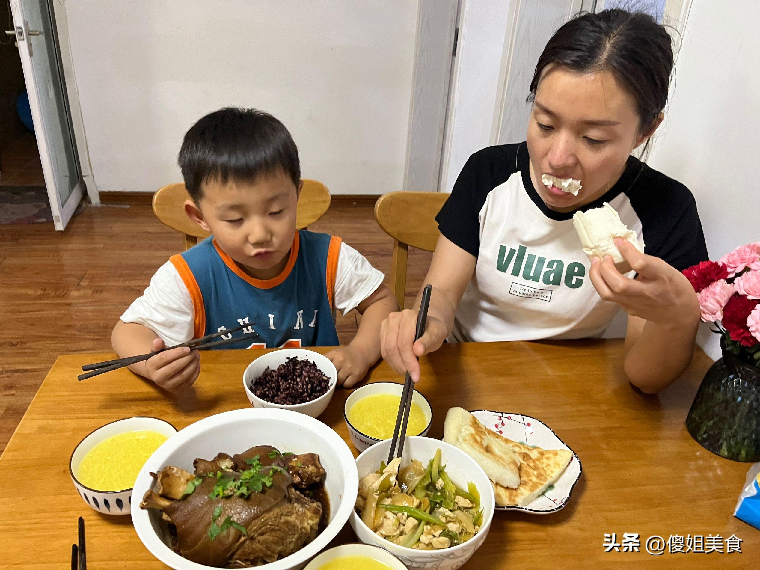 每次回到家老孃總是給我和孩子燉排骨、做紅燒肉,要不然兒子這麼願意去姥姥家裏啊,姥爺還會帶着他去超市,買一些平時我不讓他喫的垃圾食品,這下可以放飛自我的喫了,有人撐腰,一點都不怕我了。 這不臨走時老孃還給我帶了2個大肘子,這是她趕集時專門爲我們娘兩個買的。頭天晚上兒子就要喫姥姥給帶來的豬肘子,這不早起我就給他燉了一個喫,兒子解饞了也喫美了,還炒了個青菜,成本花了58元,這麼豐盛的早餐當然要曬個朋友圈了,在朋友火了,網友:真講究,喫不起。下面我把我娘倆的豐盛早餐分享給大家看看。