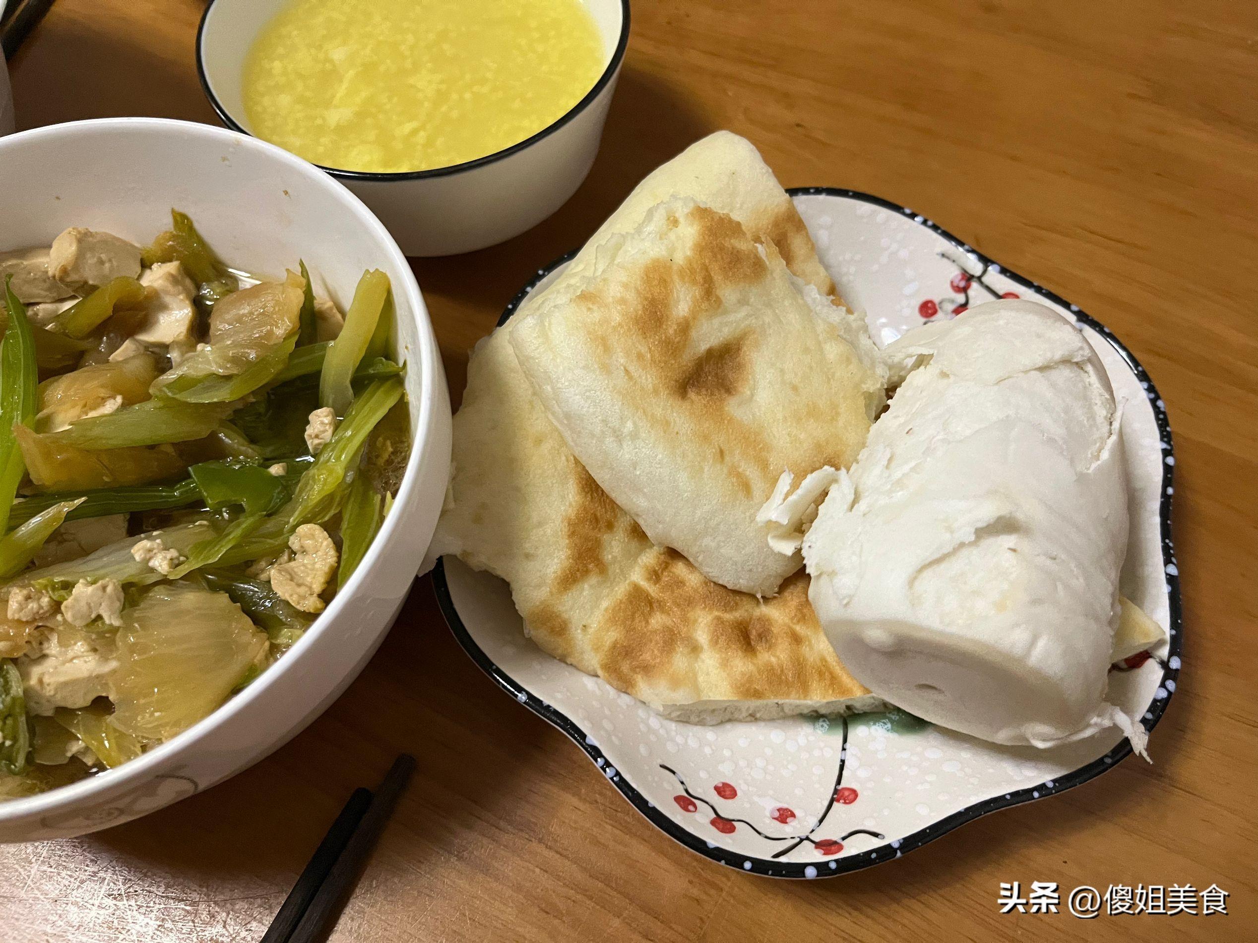 看到這個發麪餅餅了吧,可是我老孃親手烙的,烙的這個發麪餅比賣的還要好,特別的喧軟好喫,裏面還帶有蔥花,蔥香的味道很饞人。