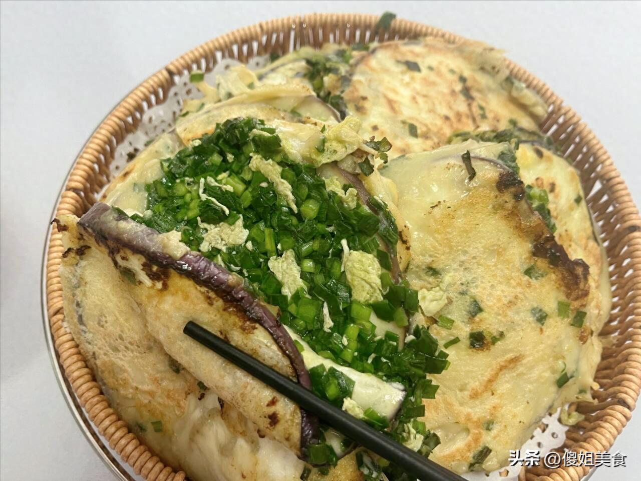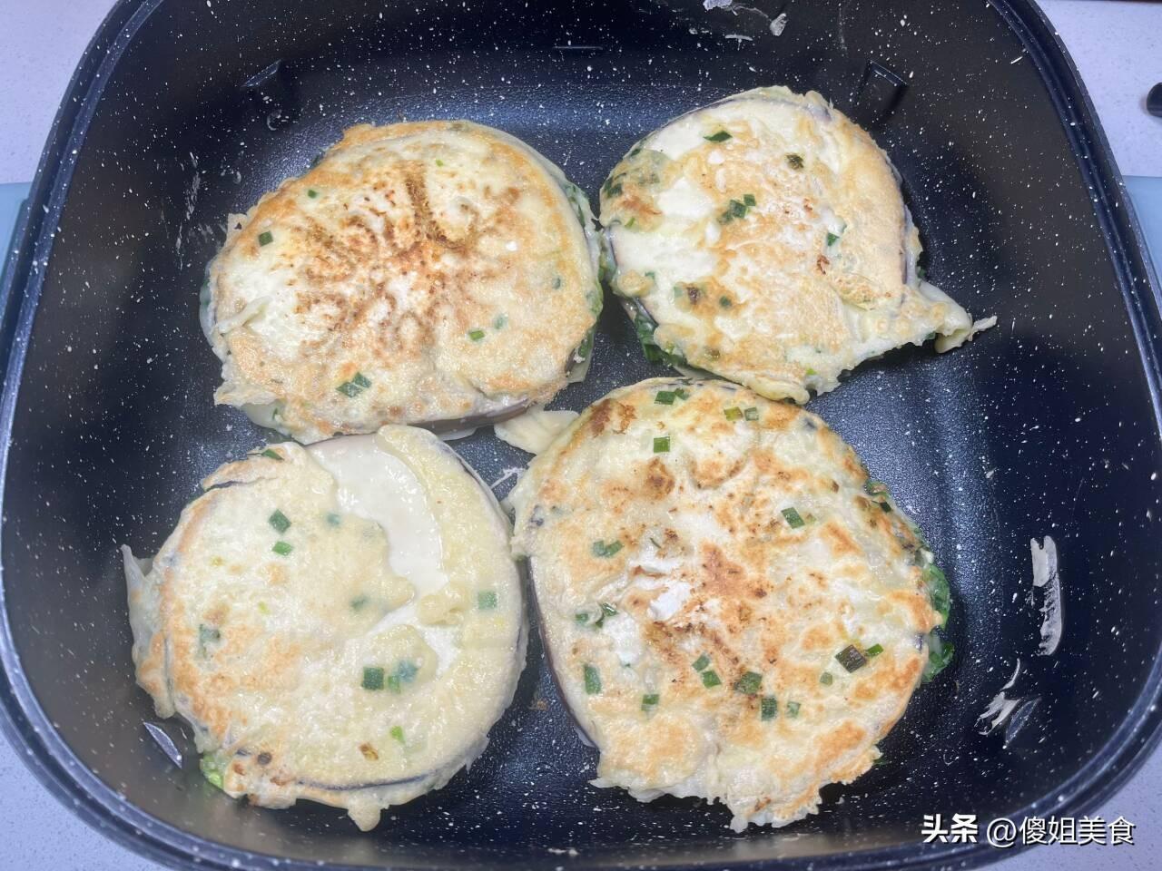 鮮美好喫的韭菜茄盒就煎好了,外脆裏鮮,好喫極了,喜歡喫辣椒的可以搭配辣椒油蘸着喫,超過癮,我和兒子兩個人一頓喫了一個大茄子,韭菜和茄子這樣搭配太香了。