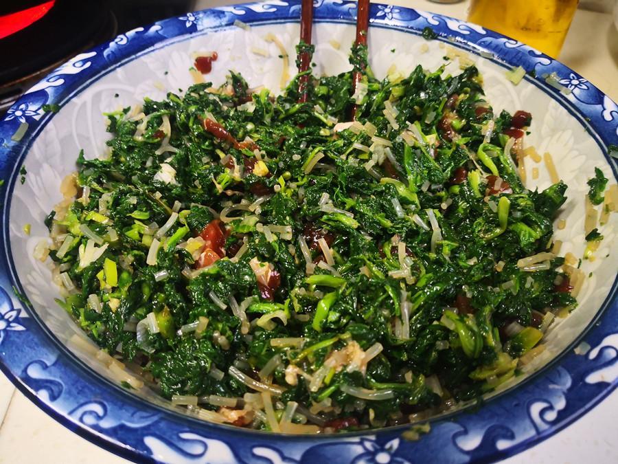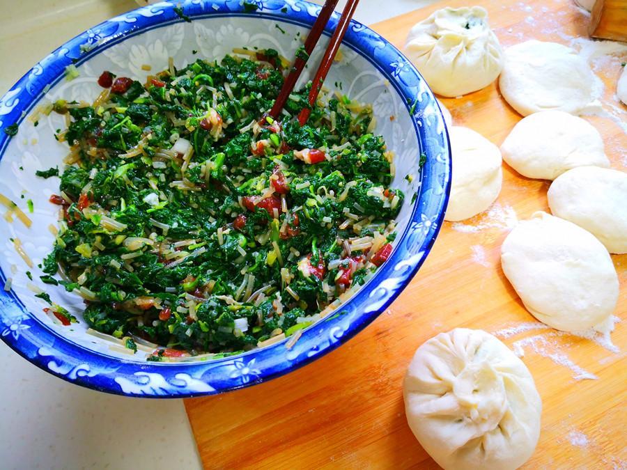 1、選擇小白菜:這一步至關重要,要精選新鮮嫩綠的小白菜,去掉多泥的根部分,多衝洗幾遍,洗至水變清後控水撈出切細,撒上一點食用鹽醃製10分鐘,目的是剎出水分,這樣包子不易出湯水,最後擠幹水分放入盆中。這一步看似簡單,實則關鍵,水分擠得太多,包子餡會幹巴巴的;擠得太少,又會影響包子的口感。
