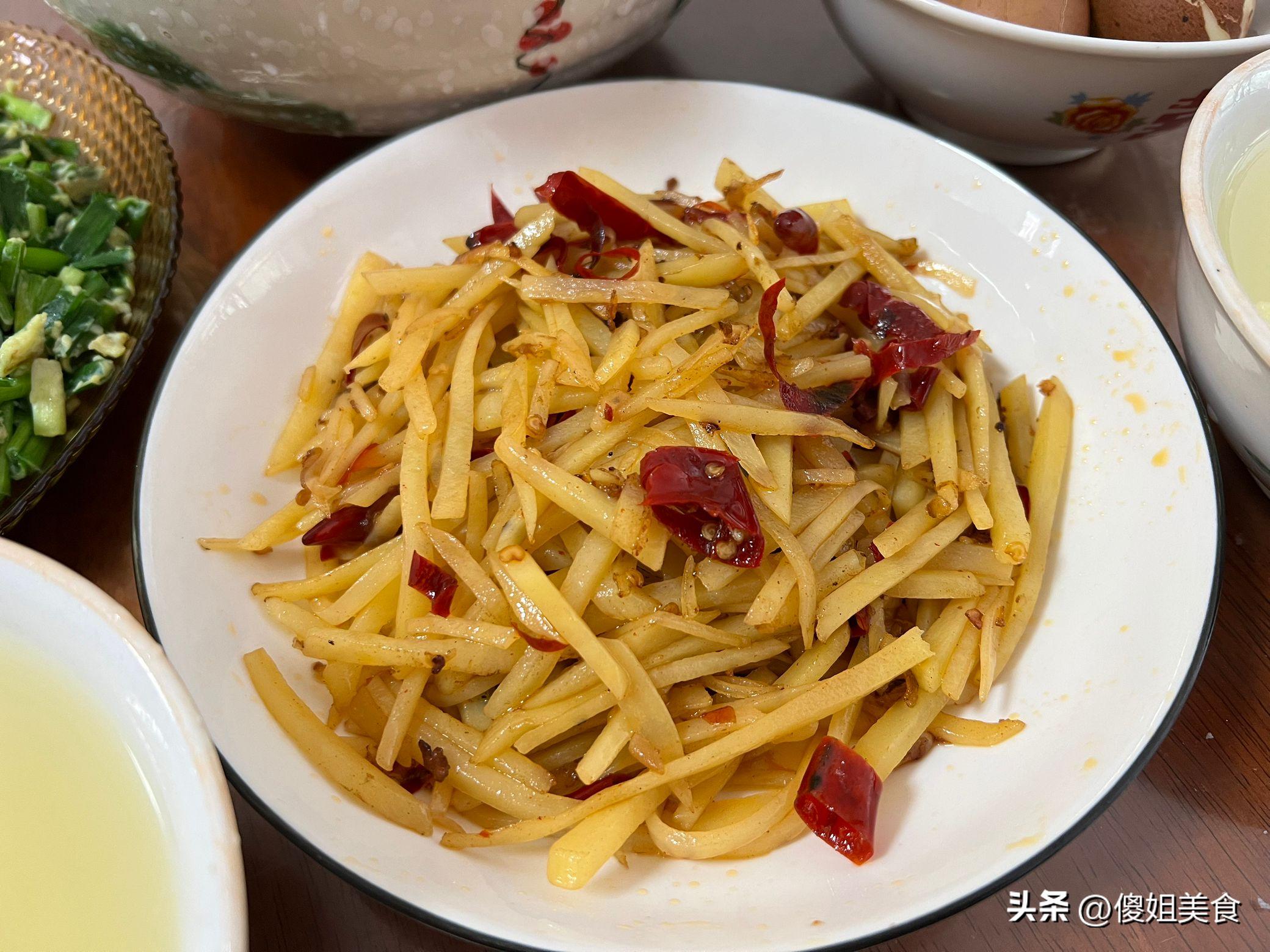 先來說說我家的拿手好菜——炒土豆絲。說實話,炒土豆絲在很多家庭中都算是最簡單不過的家常菜,但要炒得脆嫩不夾生,還是有技巧的。每次我都會把土豆切得均勻細緻,用清水泡一泡,去掉澱粉,這樣炒出來的土豆絲既清爽又不粘鍋。今天早上我加了點小米辣提味,再放點醋,酸辣開胃,炒好的土豆絲一上桌,老公和孩子就忍不住夾了一筷子。