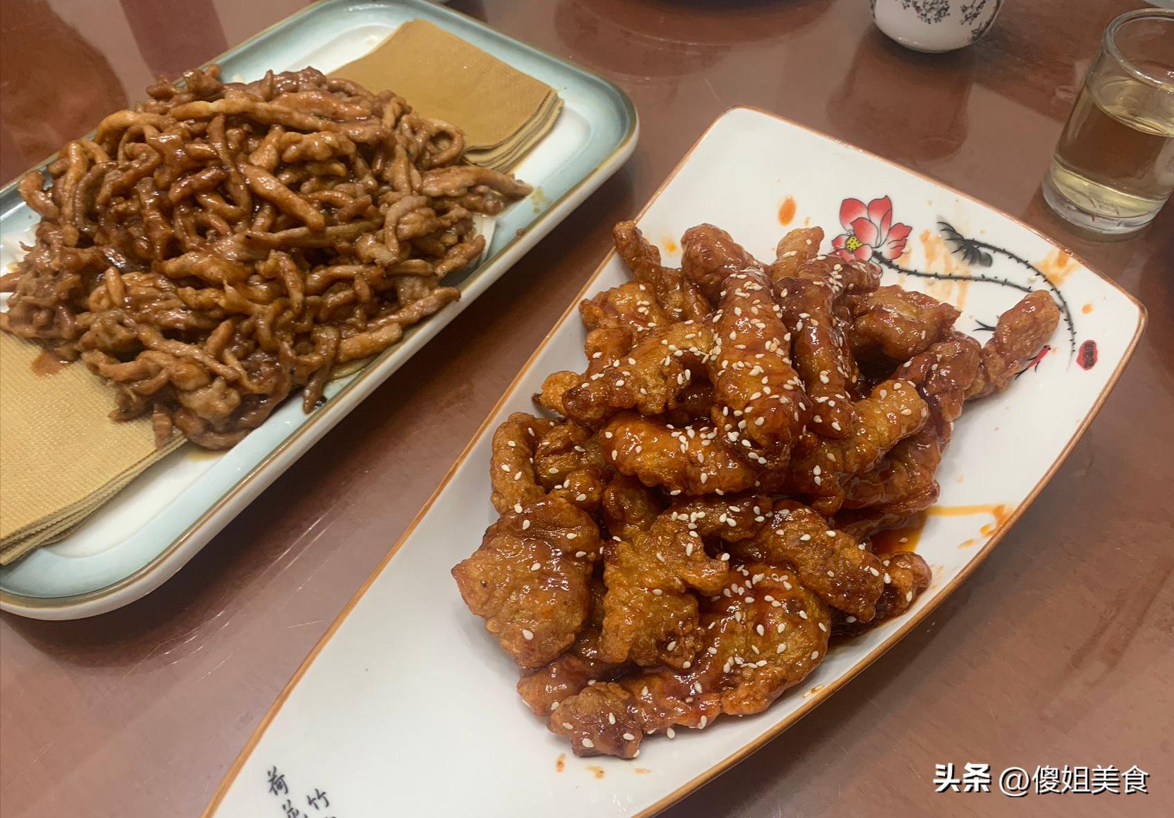 這兩道菜可是孩子們都喜歡喫的,京醬肉絲和糖醋里脊,每次我們去飯店喫飯都必點。這兩個菜小外甥女還挺愛喫,說在家時從來沒有喫過。