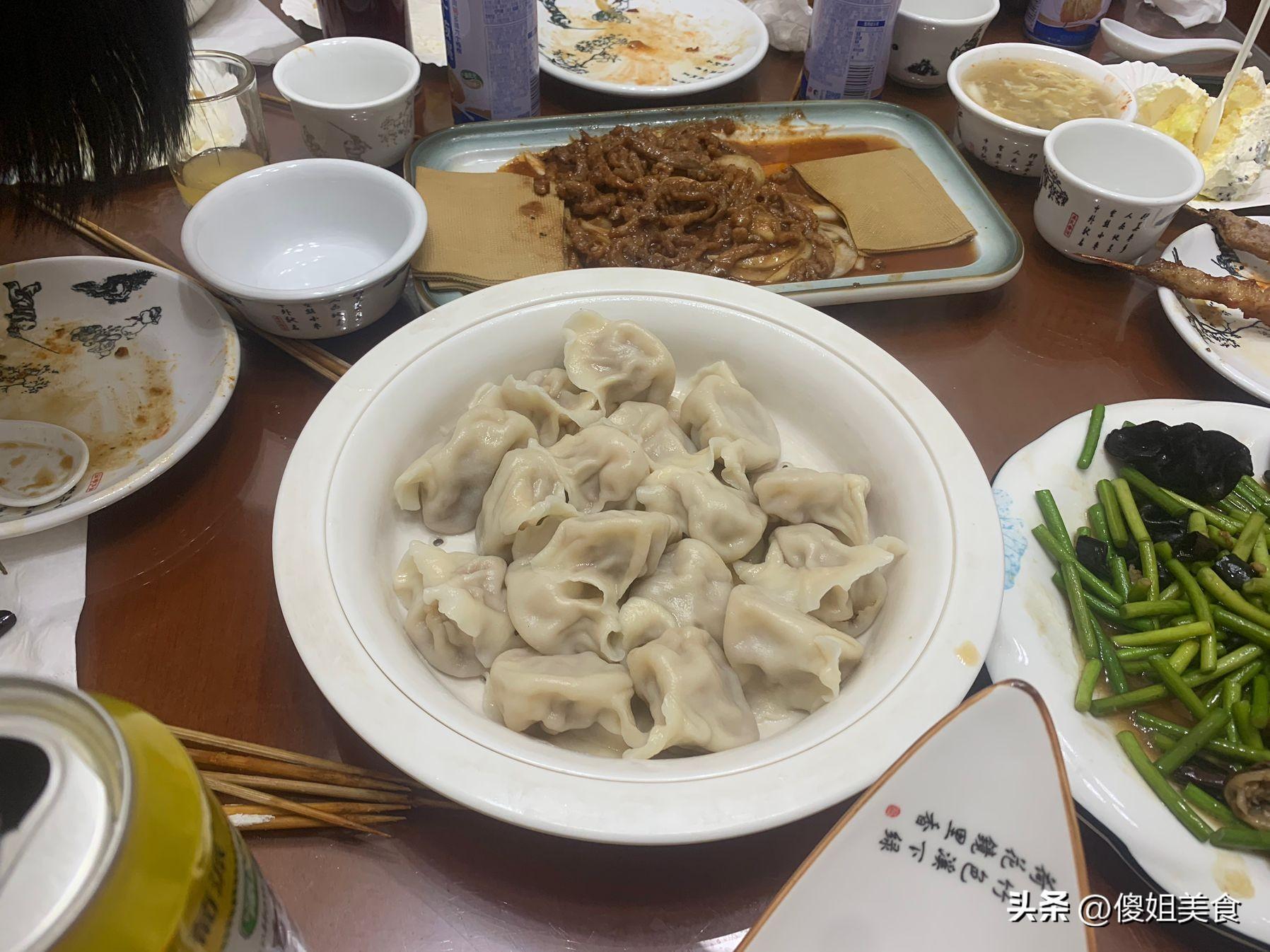 主食我們要了一份豬肉大蔥的水餃,這一份大概有20多個,是手工現包的,個頭很大,孩子們喫了這麼多菜也都喫差不多,每個人就喫了一兩個水餃,剩下的我和婆婆、二姐硬喫下去了。