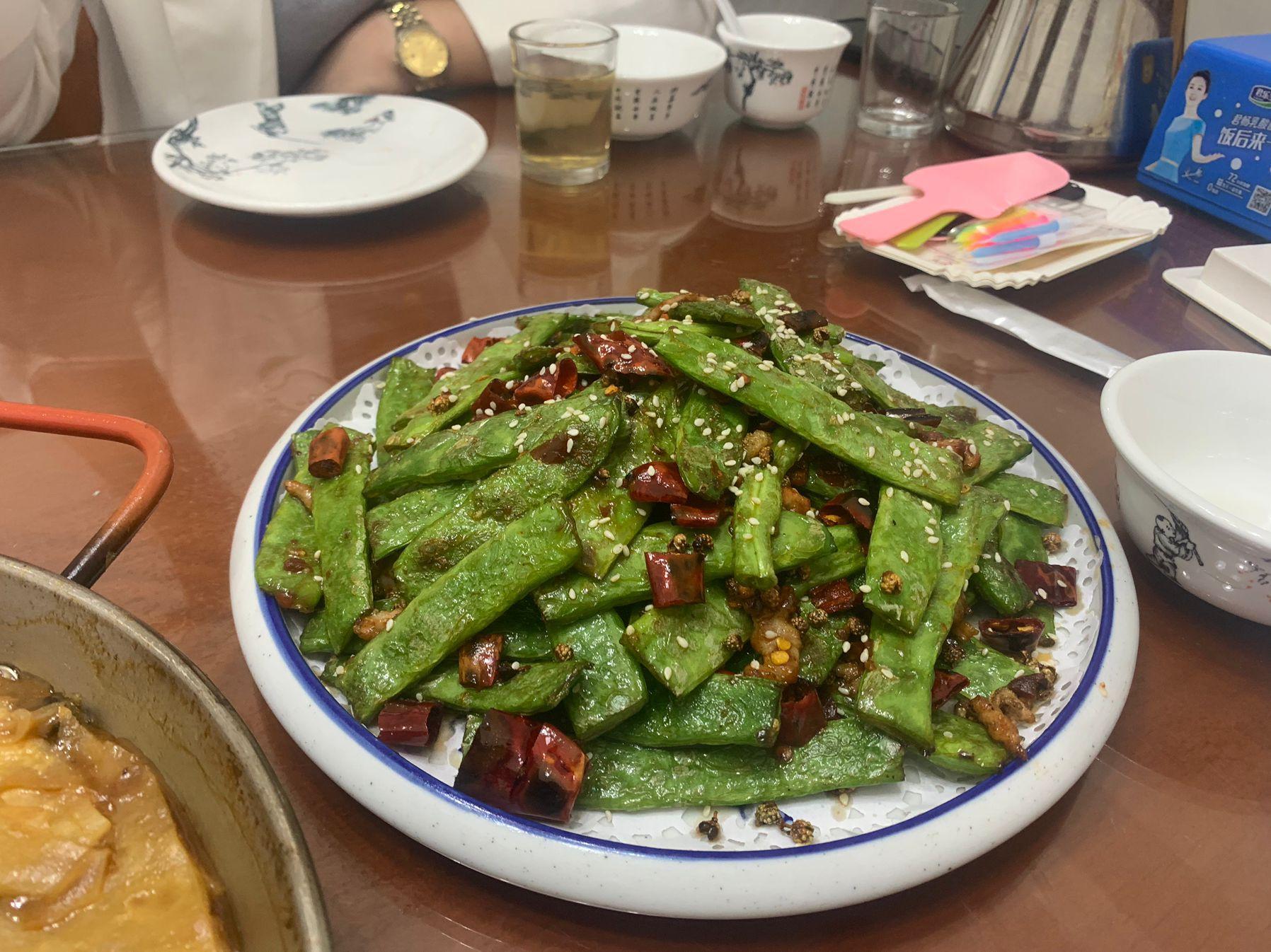 乾煸豆角是油炸過後,再用幹辣椒炒的,香辣鮮美,我和二姐都愛喫,婆婆不能喫,嚐了一個,也說好喫。 這麼好喫的菜,婆婆也是沒有放過,比我和姐姐沒少喫,應該是閨女回來開心的吧。