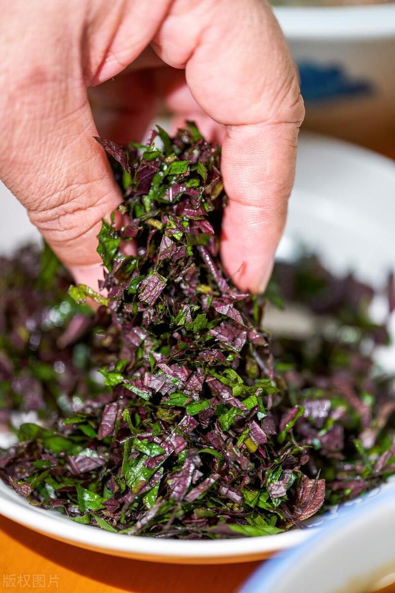 說到紫蘇的營養,有史爲證。據《本草匯言》中記載:“紫蘇具有解表散寒、行氣寬中”的作用,被人們稱爲“長壽葉”,富含多種維生素和礦物質,還有紫蘇醛、紫蘇醇等,這些成分對於治療感冒、咳嗽、緩解緊張情緒、安神助眠等效果,因此在農村有這樣的說法“人蔘爲熱補,紫蘇爲清補”。