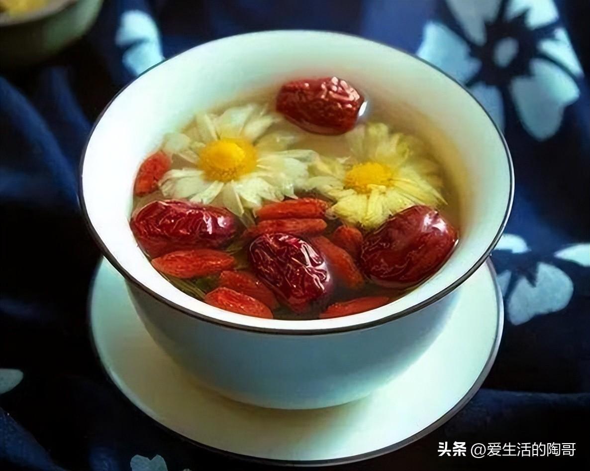 推薦喫法,菊花大棗茶。大棗可以補中益氣、養血安神。兩者一起搭配泡水喝,不僅增加了口感,還溫暖身體。