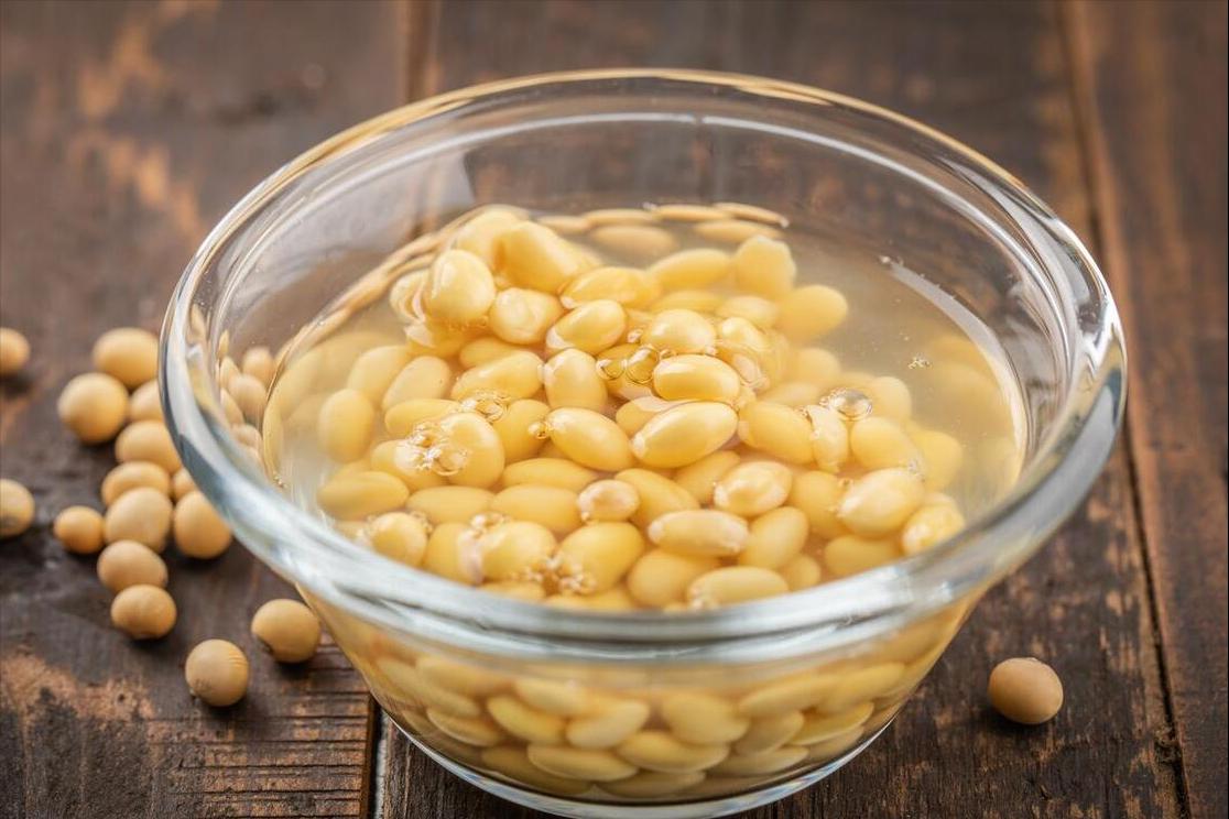 1、把黃豆稱重之後,往裏面加上清水,然後開始浸泡,泡上1個晚上的時間,就和打豆漿是一樣的步驟,直至將黃豆泡大。