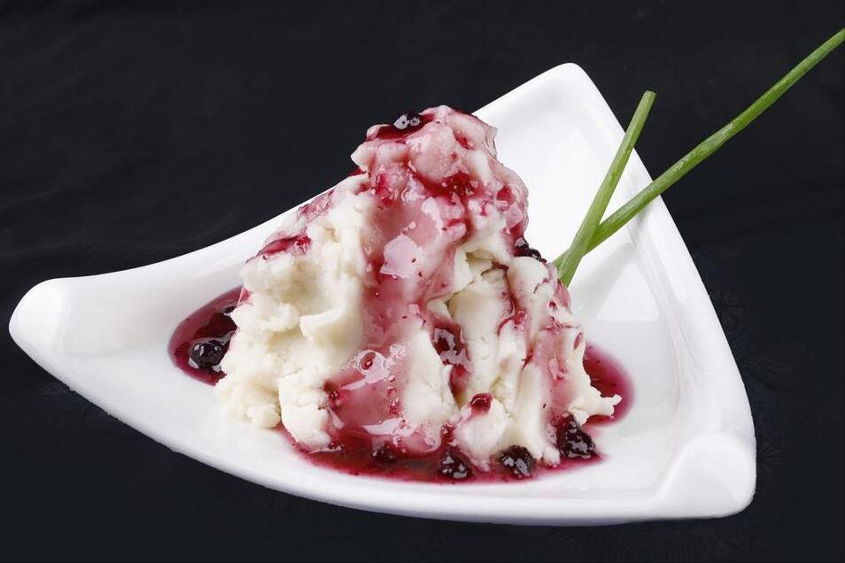 藍莓醬提前用清水稀釋,放在一旁備用,山藥外皮削掉之後,放入水中多清洗幾遍,然後將其控幹水分,切成小段,放在鍋子裏蒸,蒸上20分鐘左右,直至完全軟爛了就行,取出來用勺子壓碎,然後整理一個好看的樣子,最後淋上藍莓醬就可以了,香甜軟糯營養足。