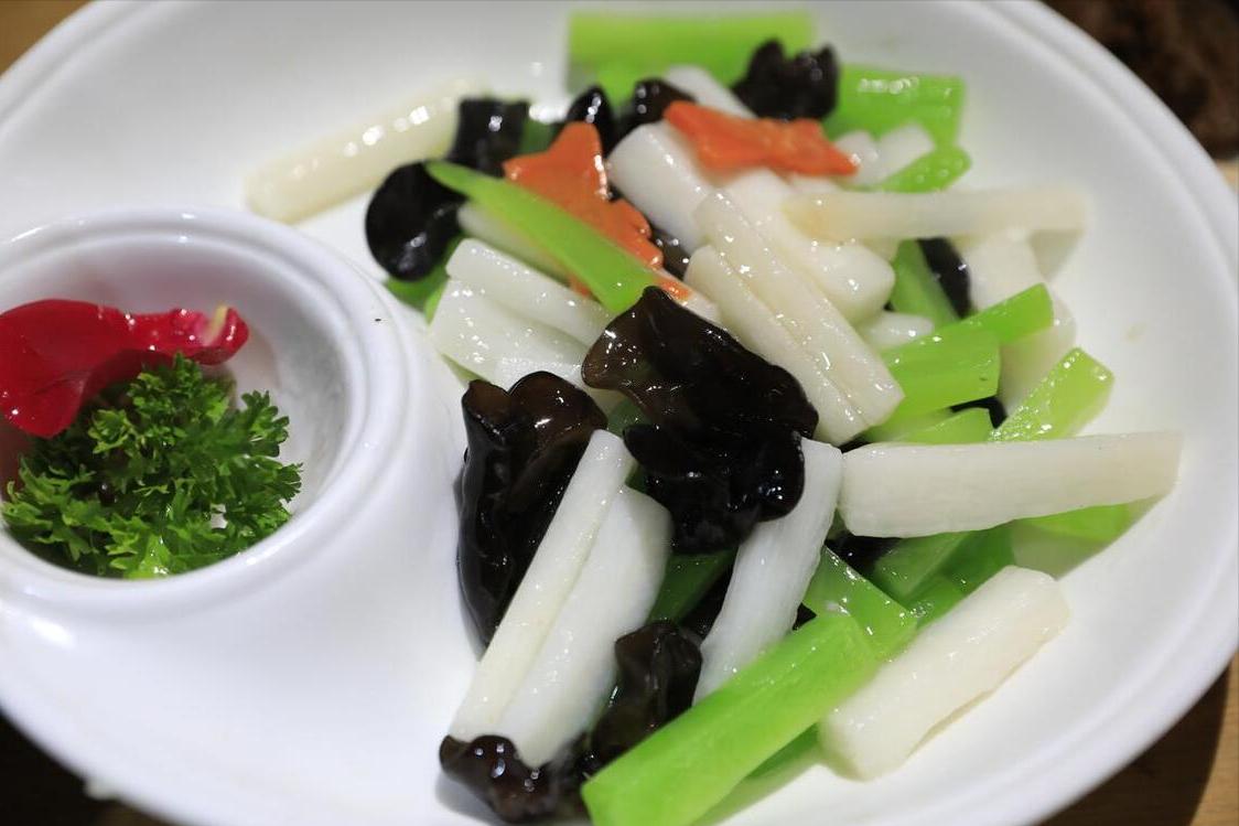 2、木耳要提前泡,泡軟了之後仔細清洗乾淨,然後再來處理蝦仁,把蝦仁盛在小碗中,加上白胡椒粉、鹽、料酒,來稍微醃製一會兒去腥,大蒜也要切好,等到所有的材料都處理完成後,就可以準備來炒了。