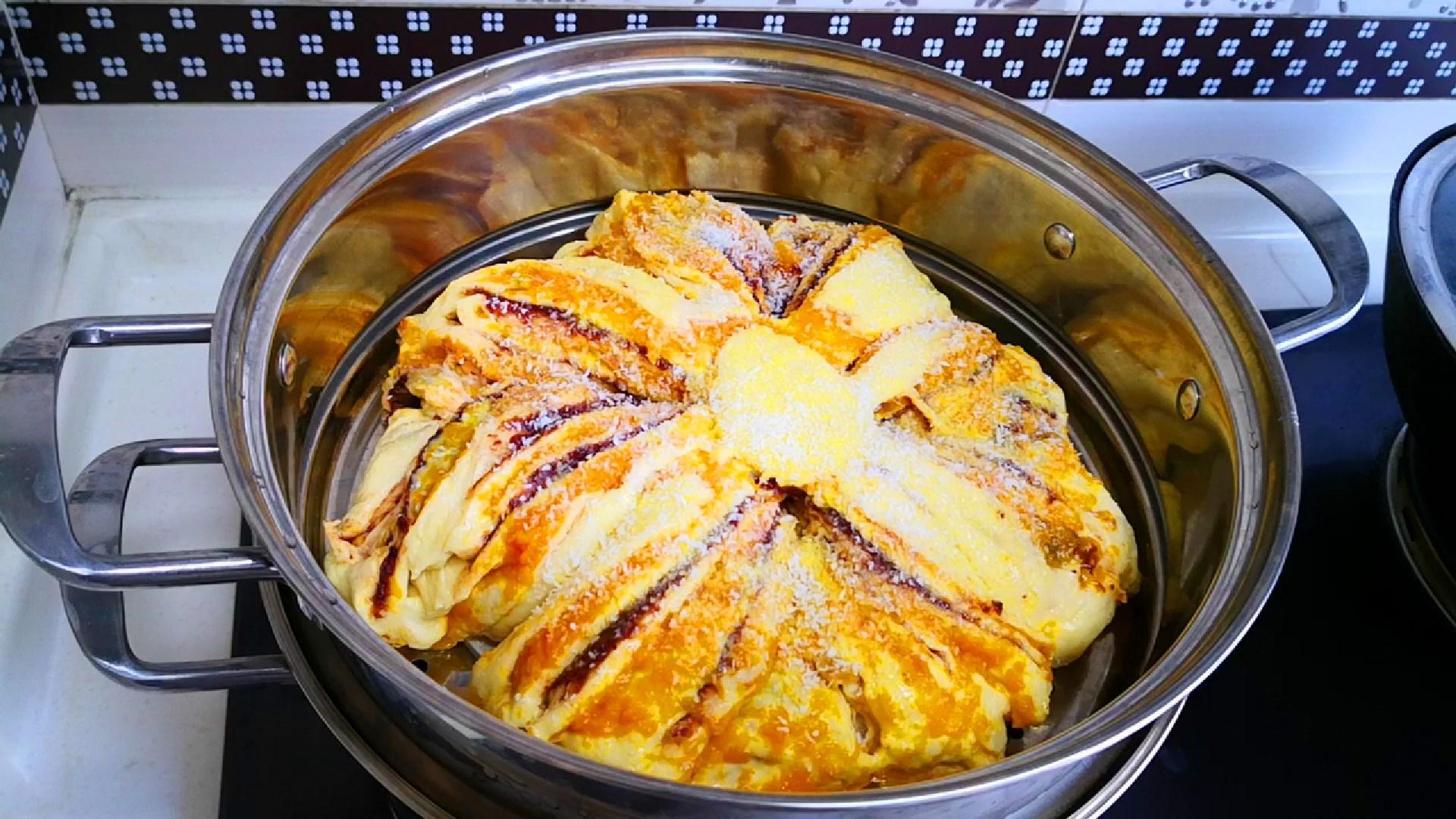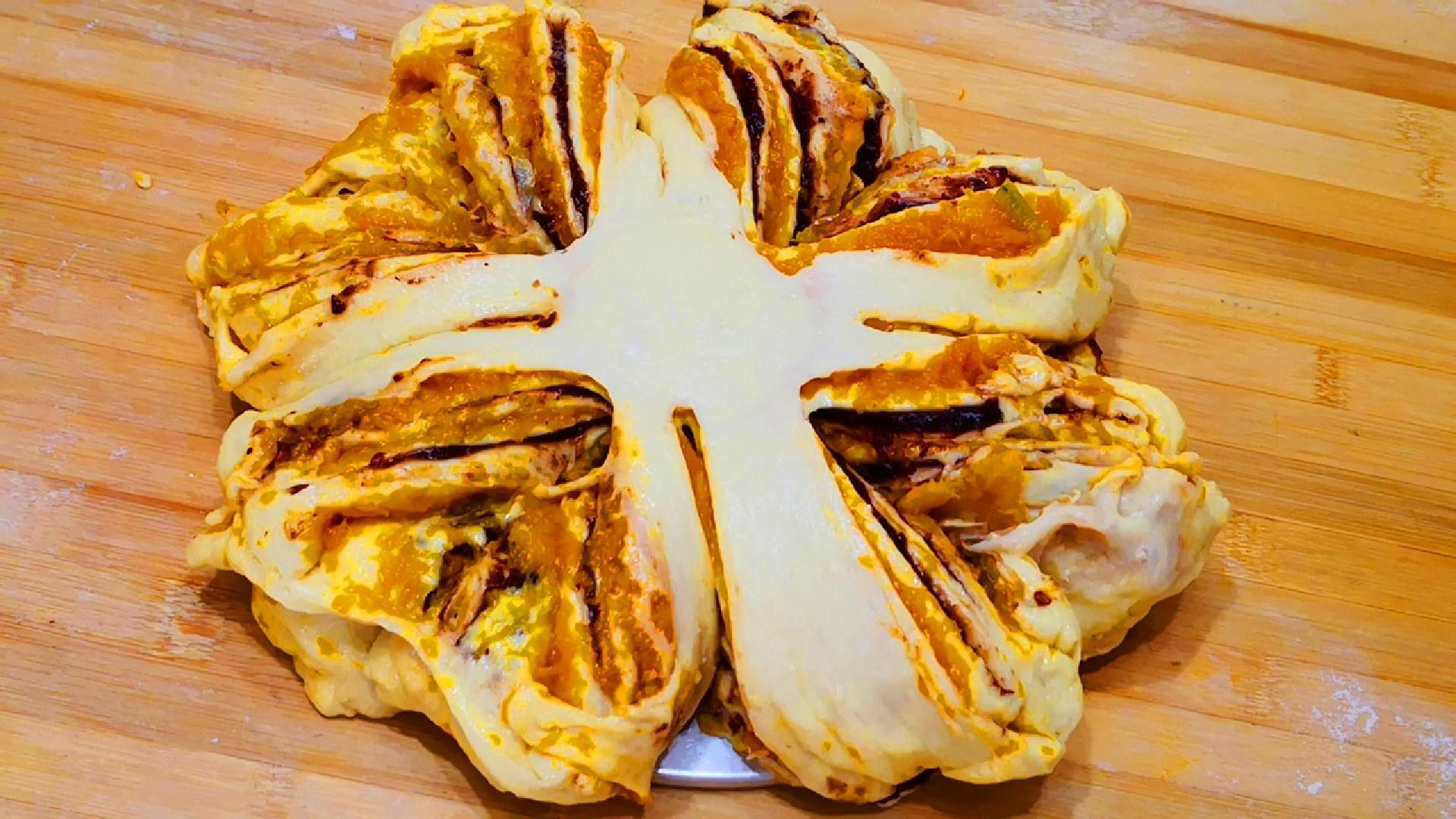 所需食材:南瓜、紅薯和豆沙各適量 2個雞蛋 400克高筋麪粉 白糖40克 酵母4克 250毫升牛奶一袋