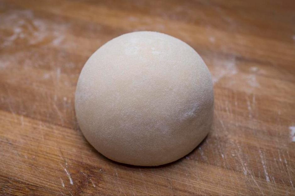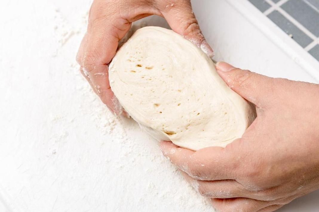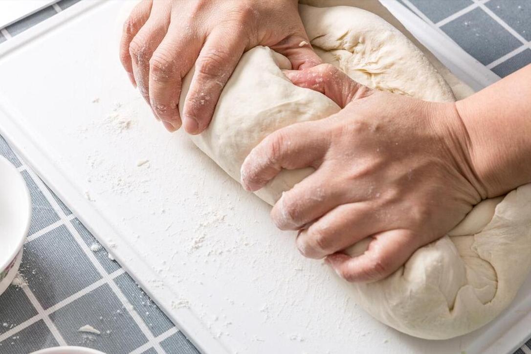 5、大概1個小時左右,我們稍微看一下面團的狀態,裏面如果是蜂窩狀就說明可以了。將麪糰取出來以後,放在提前撒上乾麪粉的案板上,然後開始不停的揉搓,揉搓片刻直至把麪糰揉到光滑。