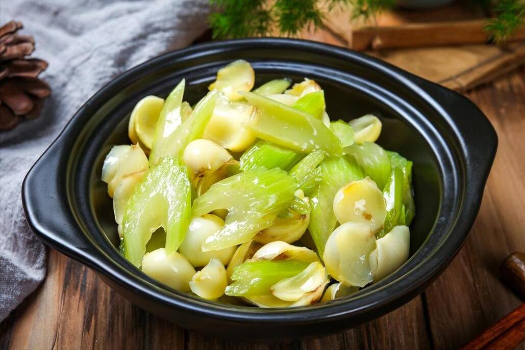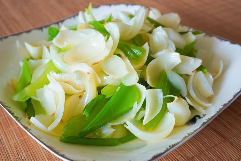 準備:西芹、百合、蔥花、大蒜、鹽、味精