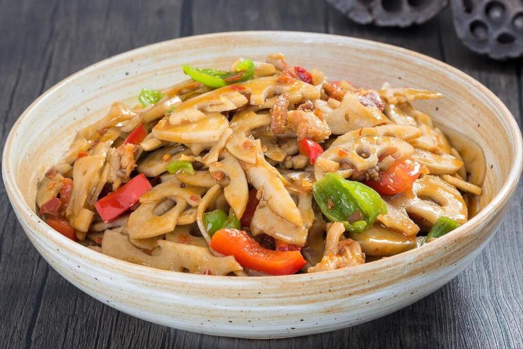 蓮藕去皮,洗乾淨切片,小米椒切圈,大蒜切末,大蔥切蔥花。鍋內倒上植物油以後,將其燒熱,然後倒入大蒜煸香,隨後倒入藕片翻炒,來點水翻炒,不然容易糊鍋。炒熟以後,放入生抽、蠔油、鹽、味精調味,倒上小米椒和蔥花,扒拉兩下,出鍋。