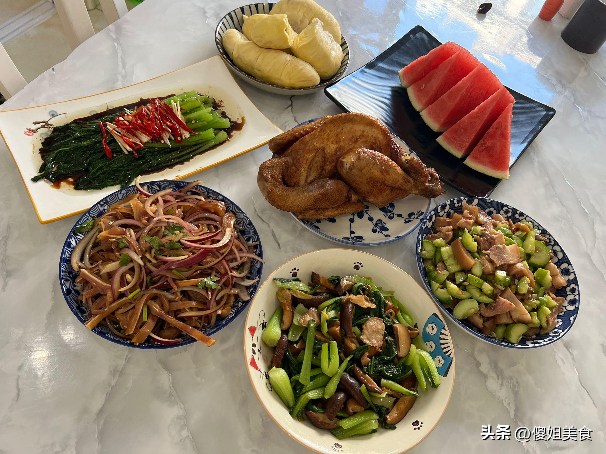 最後當然少不了水果。我們準備了兩種水果:西瓜和榴蓮。西瓜是清涼解暑的好選擇,而榴蓮則是我和大姑姐的最愛。雖然榴蓮的味道有點“重”,但它那濃郁的甜香讓人無法抗拒。大姑姐邊喫西瓜邊打趣道:“這桌飯菜,怕不是要喫破產吧,連榴蓮都準備上了!”大家聽了都哈哈大笑,雖然是句玩笑話,但也能看出她對這頓飯的滿意。