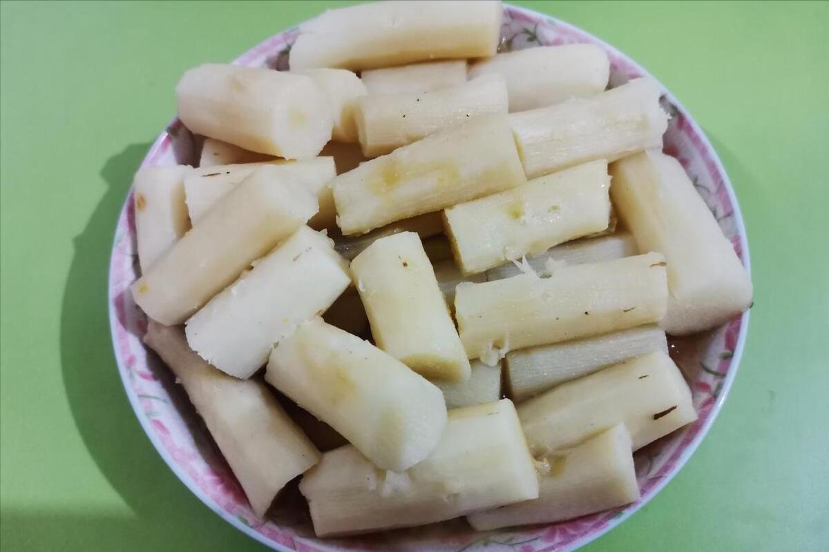 1、首先準備2根山藥,如果是比較細的話,就多用幾根,把外皮清洗乾淨之後,將其削掉,然後切成小段。