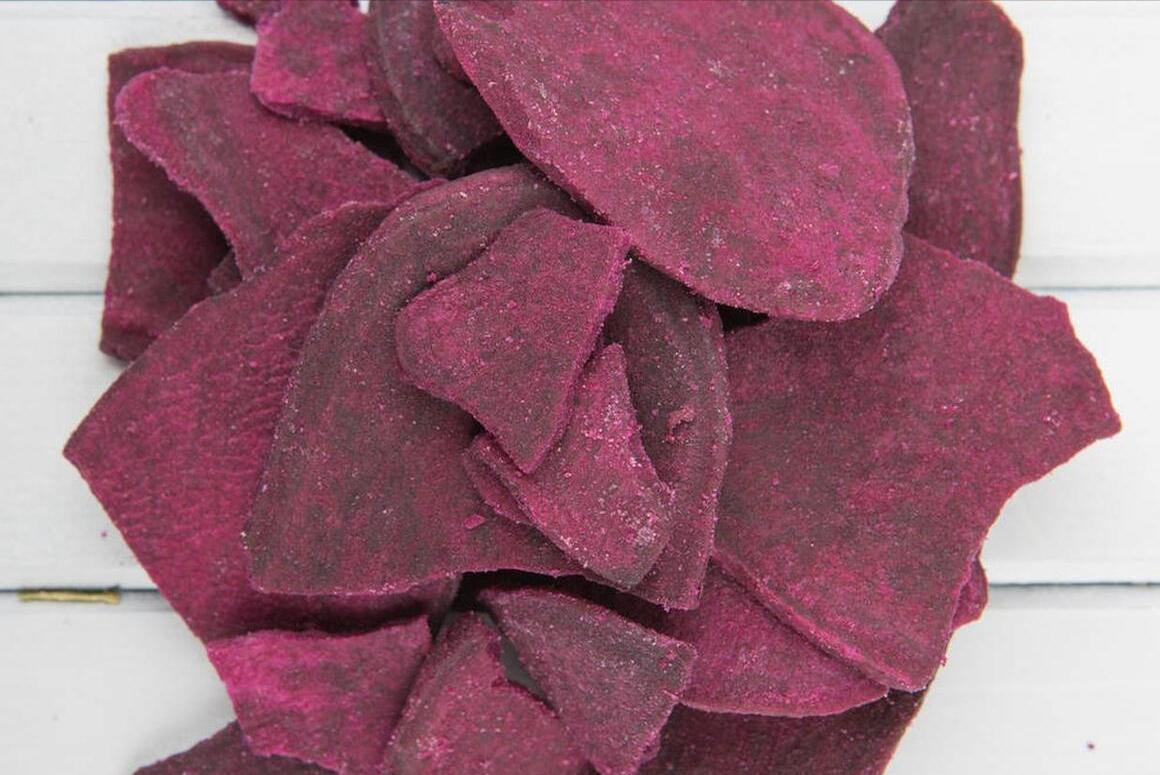 1、準備2個甜菜根,將其放入水中進行清洗,清洗乾淨之後把外皮去掉,然後切成薄片,切薄以後烤出來的甜菜根,喫起來就和薯片一樣酥脆,我個人覺得比厚切的更好喫,大家可以切點厚的,切點薄的,都試試。