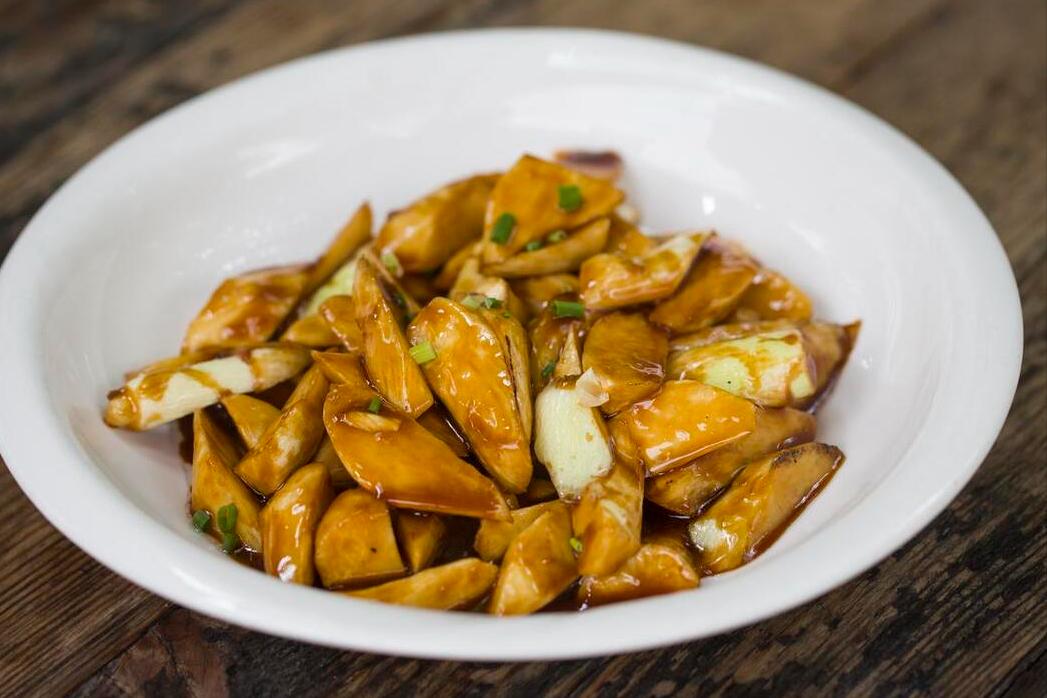 食材:茭白、蔥花、蠔油、老抽、白糖、鹽、食用油