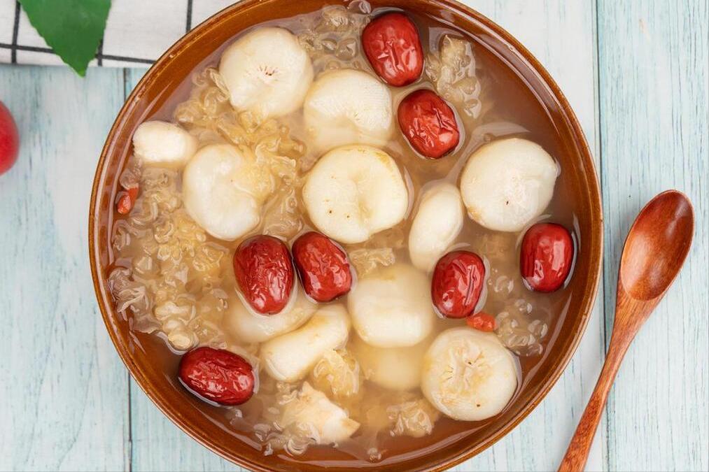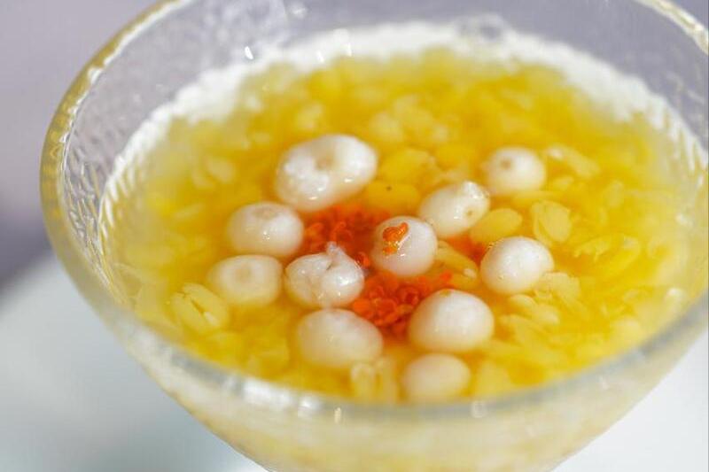 食材:雞頭米、酒釀、枸杞、幹桂花、冰糖、水澱粉