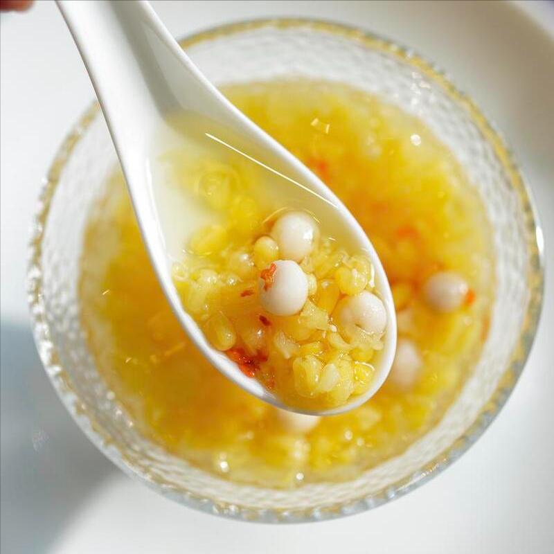 鍋中倒水燒開後,倒入酒釀和冰糖,再次煮開以後往裏面倒入適量的水澱粉,小半碗就行了。倒進去以後勾芡,等再次煮開以後,將雞頭米倒進去,煮10秒鐘即可關火,關火之後將枸杞和幹桂花倒進去,攪拌均勻即可開喝。