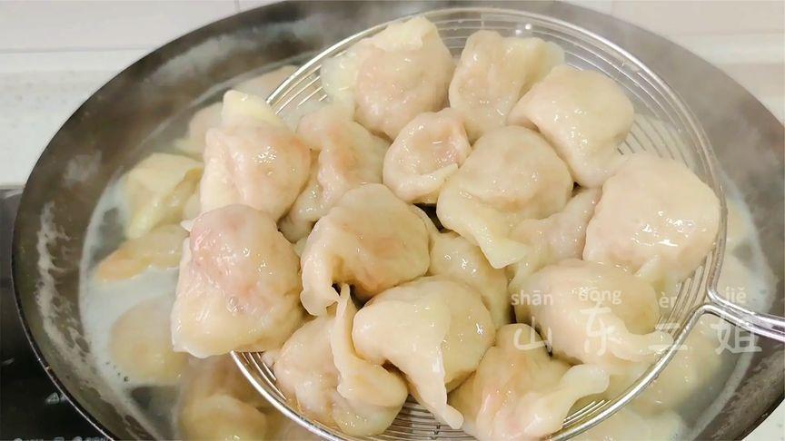 3、鍋中加水燒開,放入餃子,煮至餃子浮起,再煮幾分鐘至熟透即可撈出。
