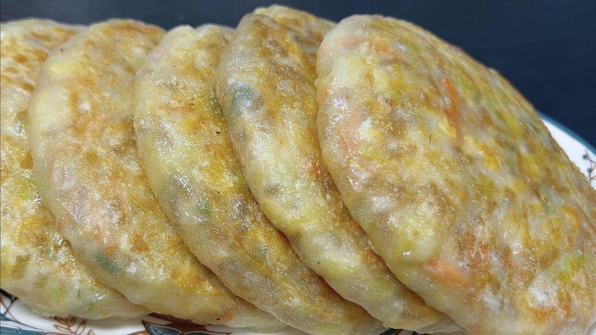 3、醒好的麪糰分成小劑子,擀成薄圓片。取一片面片,放上適量肉餡,像包包子一樣收口,然後輕輕壓扁。