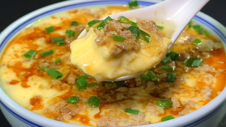 3、蒸鍋中加水燒開,放入蒸碗,蓋上鍋蓋,中小火蒸 15 分鐘左右,至蛋液凝固、肉餡熟透。取出蒸碗,淋上少許香油即可。