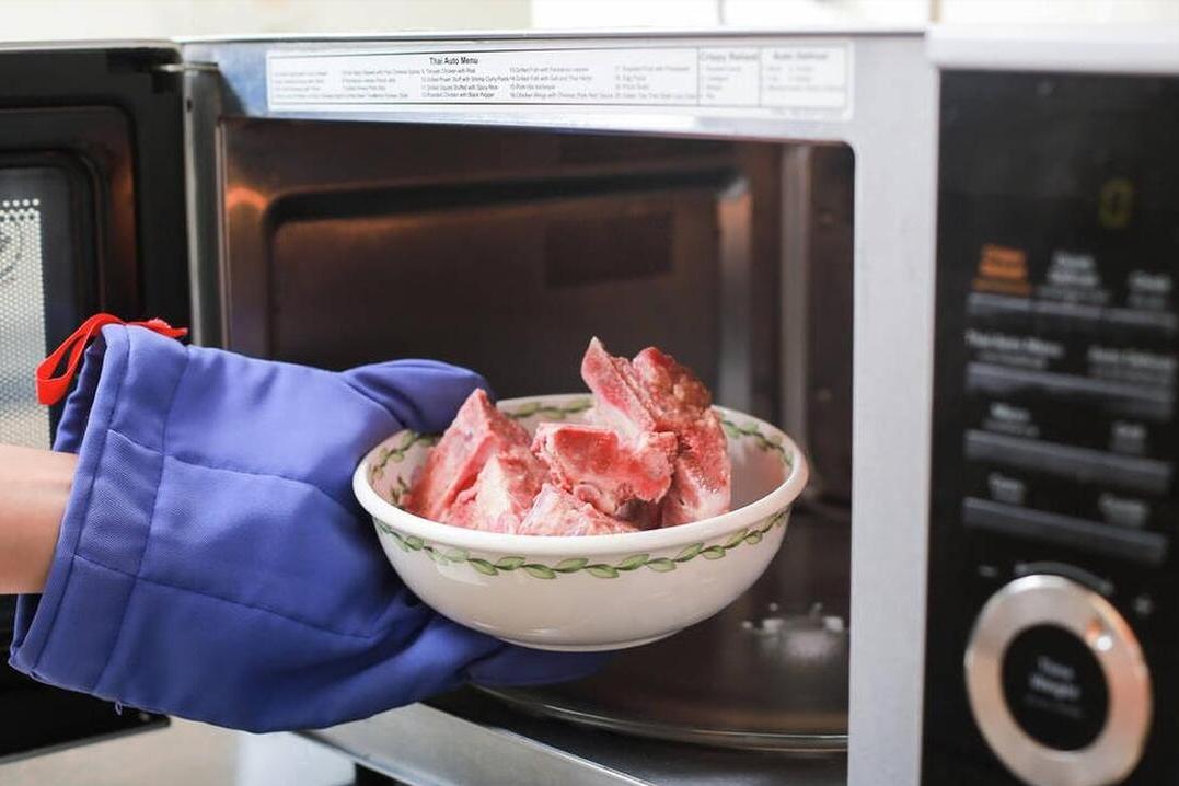 但是如果塊頭太大,2分鐘應該是不行,拿出來之後感受一下,不行的話繼續放進去,然後再計時2分鐘的時間,再拿出來感受一下,這樣循序漸進,直至凍肉完全解凍就可以啦,這方法只需要幾分鐘的時間,是不是更方便?