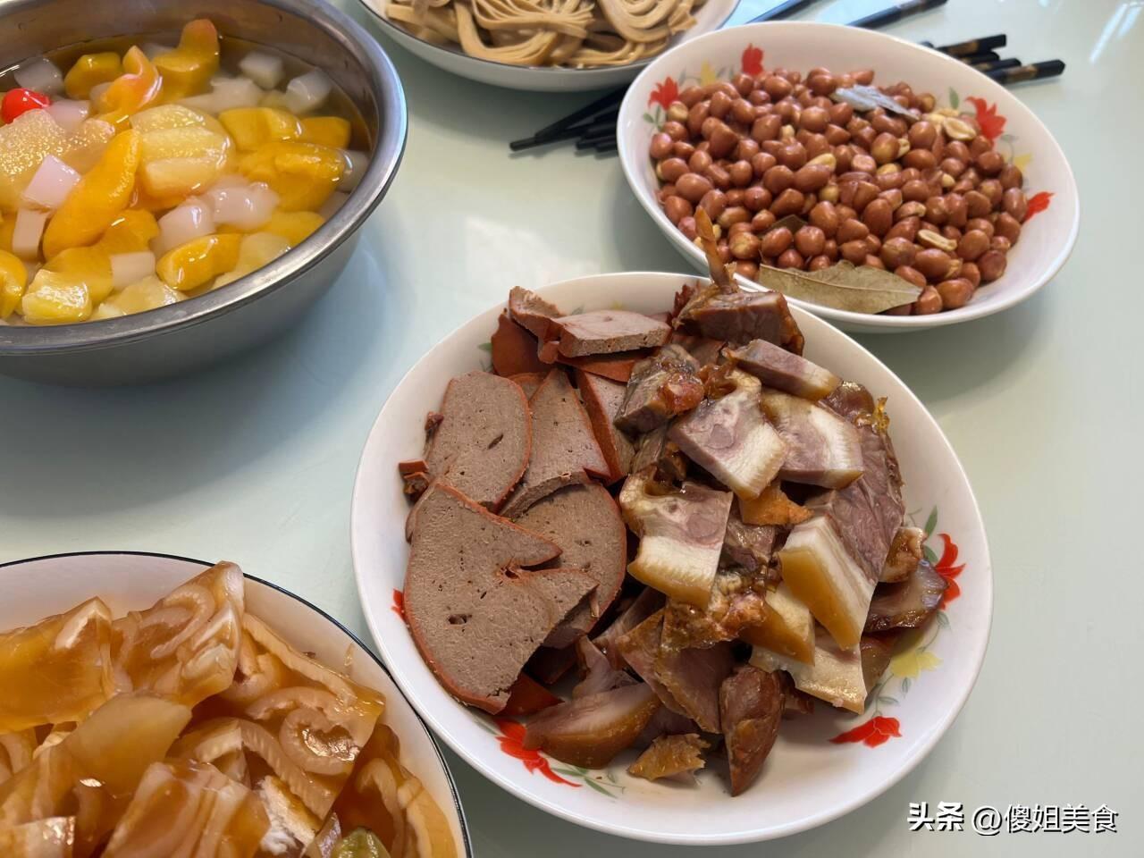最後兩道菜是切了個豆腐皮和一碗什錦罐頭,收秋收的也都喝不上水,都上火了,來個罐頭喫喫不錯,去火。準備了滿滿的一大桌子家常菜,公公回來後開心的像個孩子,全家人一起祝福公公生日快樂。雖然飯菜很簡單,但是真的很快樂與幸福。