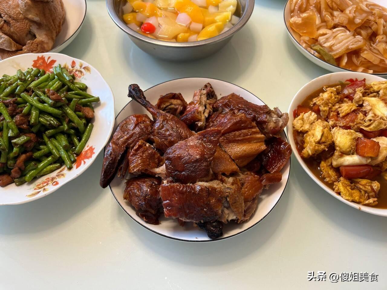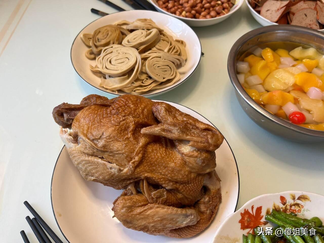 集市上有家肉食店,都是他們自己做的,尤其是這個燒雞,口感鮮美,軟爛好喫,就連骨頭都是酥的。公公牙口不好,燒雞正適合他喫,這一隻燒雞花了25塊錢,放在盤子裏,喫的時候用筷子搗一下就可以。