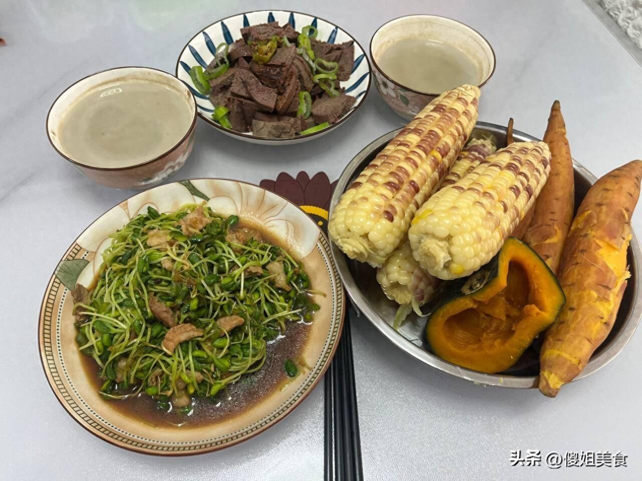 好長時間沒有在家起火做飯了,去菜市場買菜的時候感覺各種蔬菜就一個字“貴”。買了點青菜、豬肉還有老公愛喫的豬肝就回家開始忙活着做飯。回家的路上正看到賣玉米的,就隨手買了幾個,2塊錢一個,不是很貴。我和老公一邊聊天一邊做飯,一會的時間就做好了,自己做的飯菜看着就特別的有食慾。其實做飯這方面我只是個配角,我打下手,老公掌勺,簡單的晚飯好喫又好做,不剩不浪費,用心過日子。下面把老公做的家常菜分享給大家,一起來看看吧。