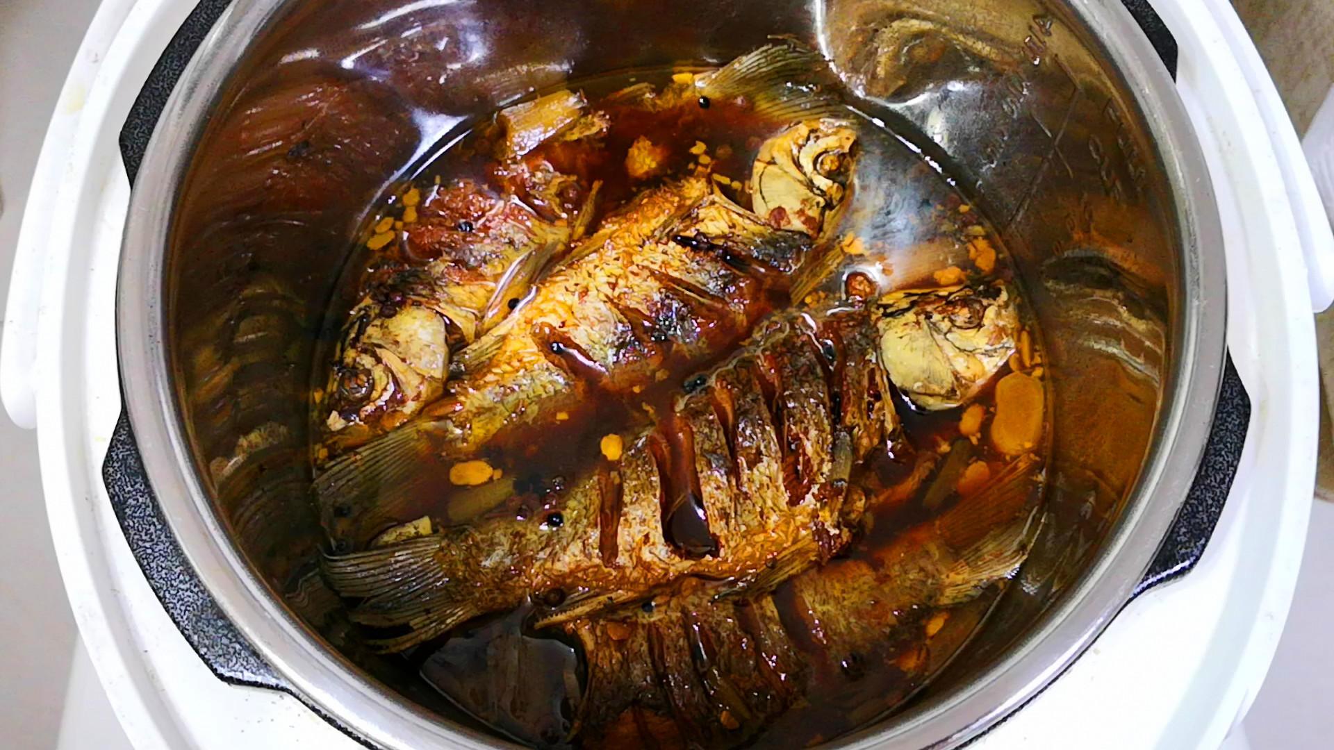 6.鯽魚經過高壓鍋烹飪以後骨酥肉爛,時間到了後,再把它倒回炒鍋中大火收一下湯汁,讓湯汁變濃郁,魚肉充分吸收湯汁入味後,再撒上一把香菜提鮮,美味即成!一道鮮美營養又好喫的燒鯽魚就做好,酥香可口,喫上一口便會讓你回味無窮,真香啊!