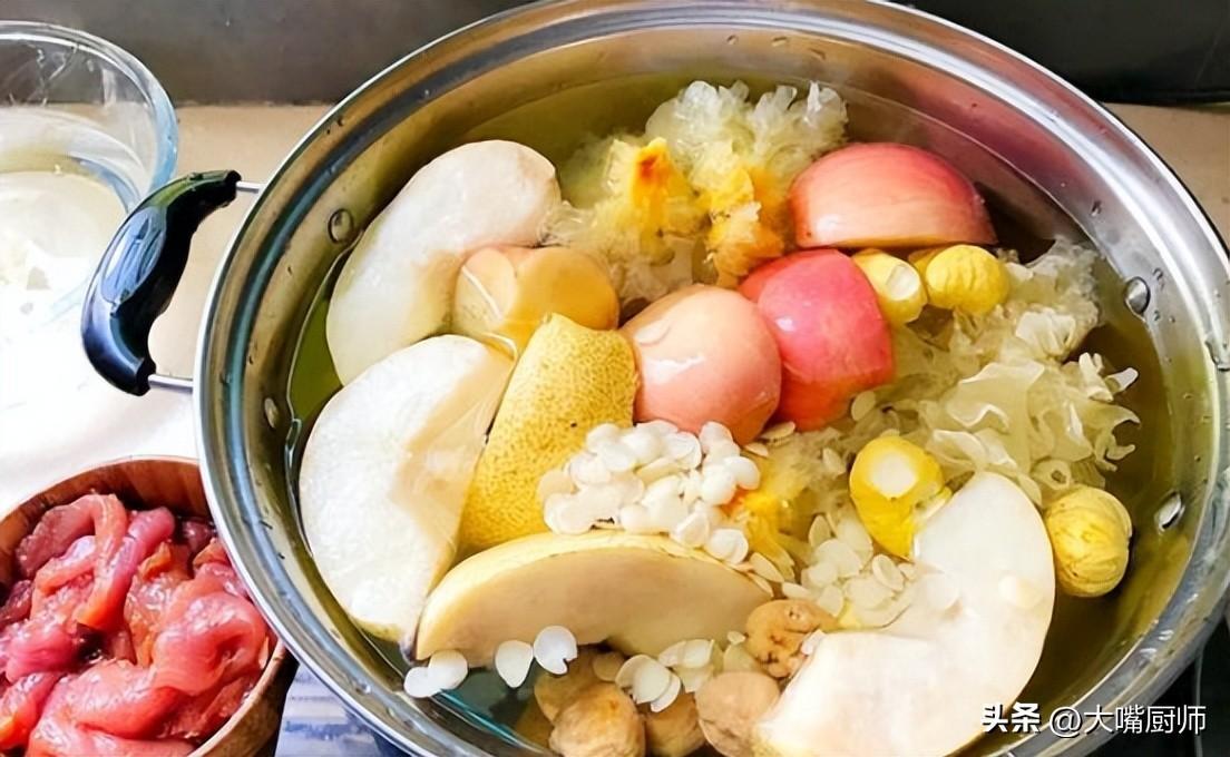 好處:此燉品清熱潤肺、止咳化痰、美容養顏。雪梨和蘋果都含有豐富的水分和維生素,能有效緩解秋燥;百合則有清心安神、潤肺止咳。