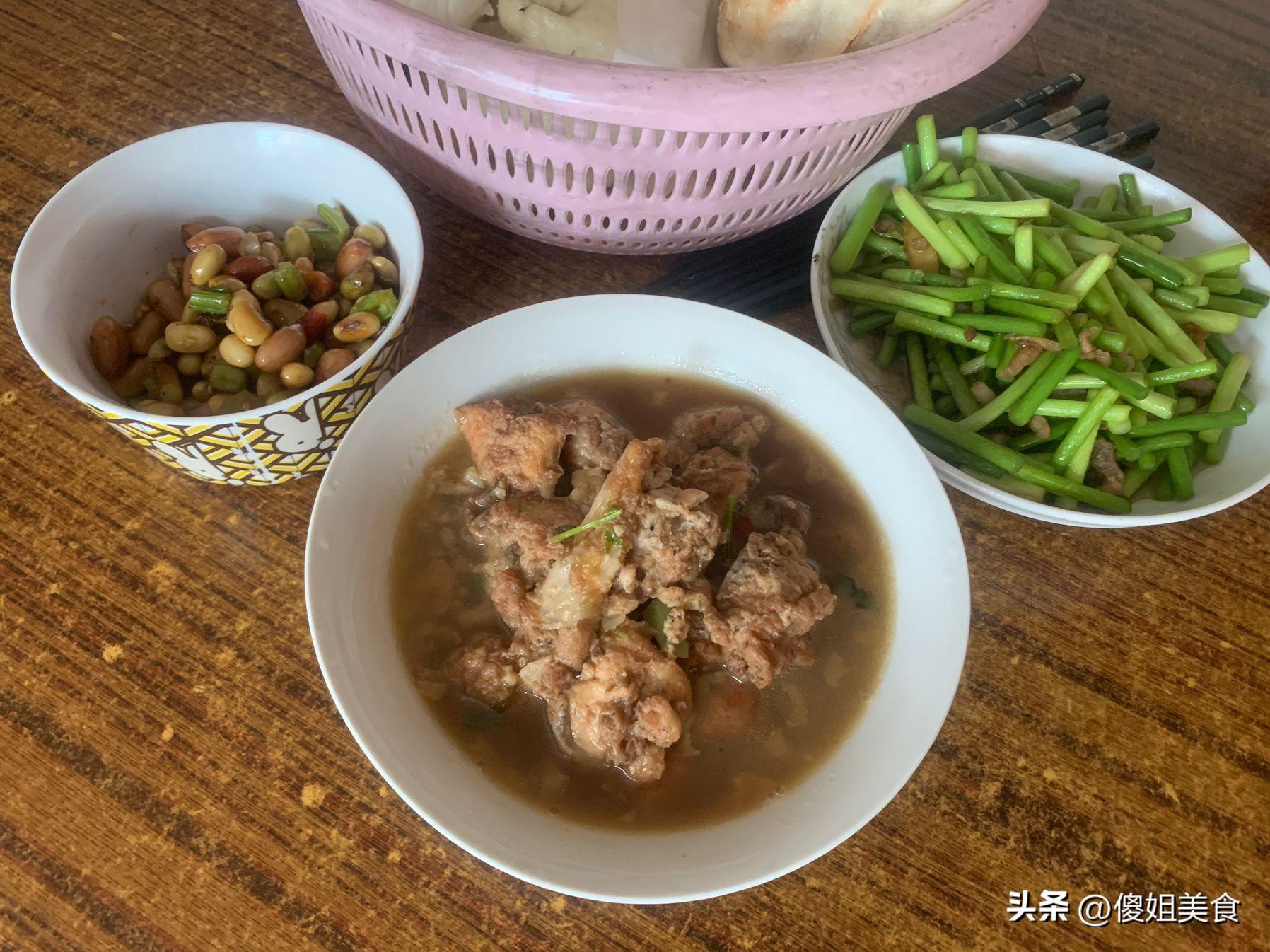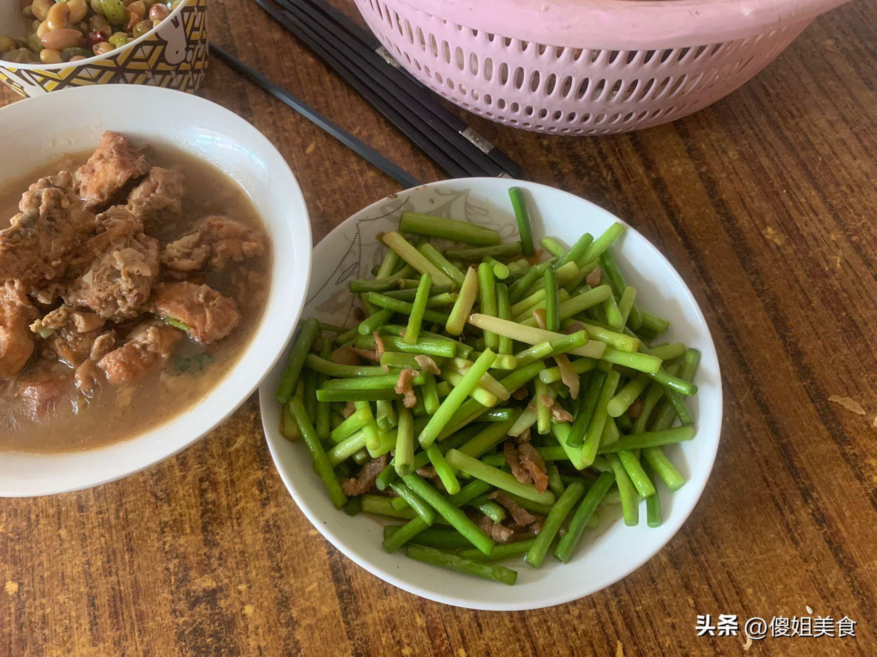 婆婆媽還炒了個蒜薹炒肉,蒜薹是我前幾天去給人家地蒜薹帶回來的一小把,特別的鮮嫩,婆婆也好喫蒜薹,正好在那買了幾塊錢的,大哥還沒要錢,直接送給了。新鮮的蒜薹鮮美爽脆,超好喫。娘兩個的午餐很豐盛也很好喫,辛苦我的婆婆媽了每天給我們做飯,我也很理解婆婆媽的付出,雖然平時有點小矛盾,好在我們都很大大咧咧,過一會就好了。大家說說我這個兒媳婦是不是一點都不知足,還吐槽天天喫包子、餡餅。其實這種生活是大家很羨慕的生活,每天能喫到現成的飯菜,還有一個很通情達理的婆婆媽,我真是掉在福窩裏了。