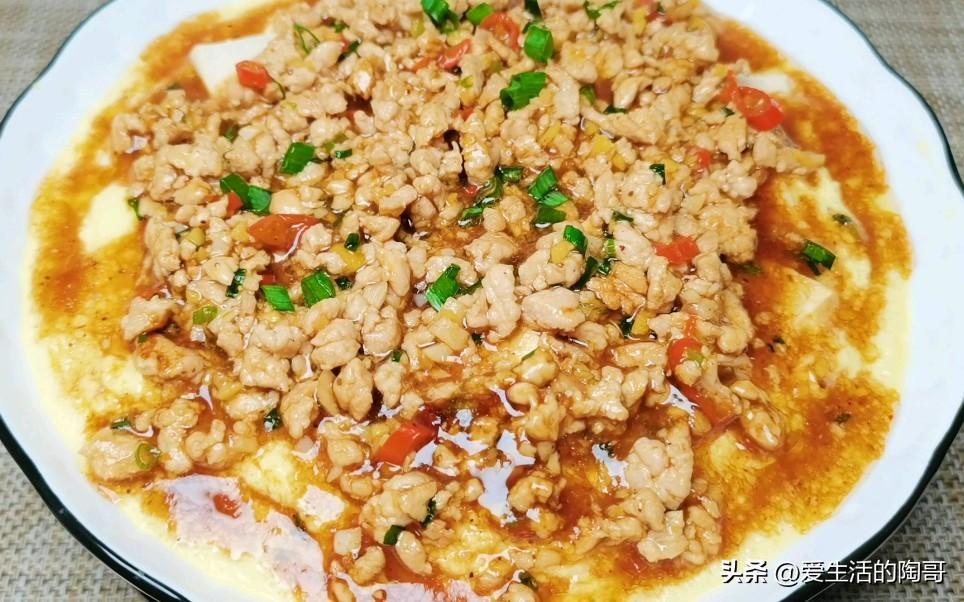 雞蛋豆腐搭配肉末一起蒸着喫,葷素搭配,營養充足,好喫美味,孩子們特別喜歡喫。