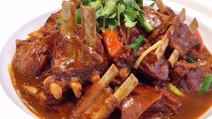 3、胡蘿蔔洗淨切塊,放入鍋中繼續燉煮約 20 分鐘,直到羊排和胡蘿蔔熟透入味,湯汁濃稠,最後根據口味加入適量鹽調味。
