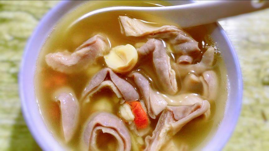 2、將豬肚冷水下鍋,加入蔥姜、料酒焯水,撈出切成條狀。蓮子提前浸泡,紅棗去核。把豬肚、蓮子、紅棗放入鍋中,加入適量清水,大火燒開後轉小火燉煮約 1.5 小時至 2 小時。最後加入枸杞和適量鹽,繼續煮幾分鐘即可。