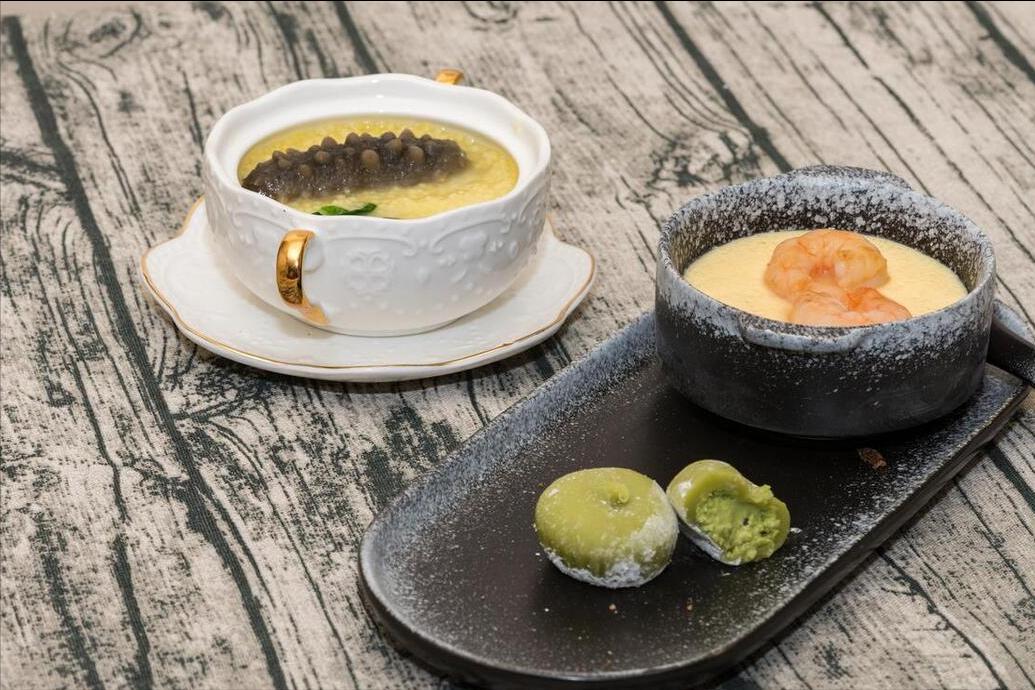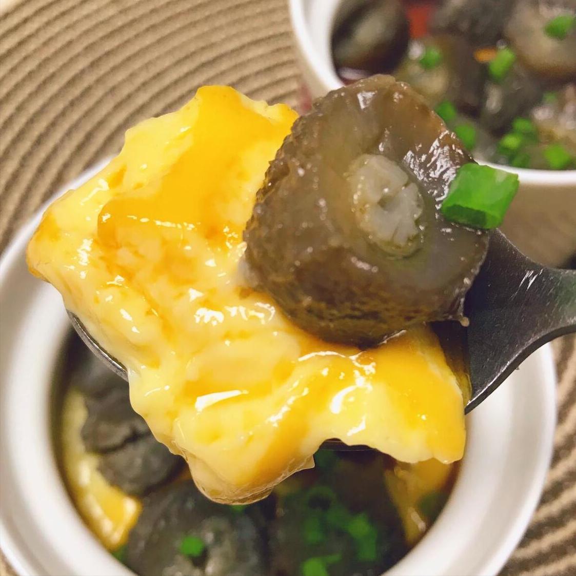 食材:海蔘、雞蛋、蔥花、醬油、香油、溫水