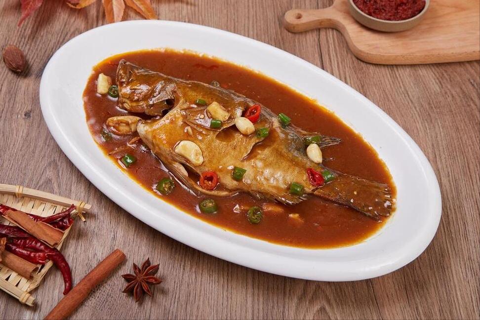 2、下面往鍋內倒油燒熱,然後將鱸魚放進去煎一下,煎到金黃以後,把姜蒜倒進去炒香,接下來用鹽、味精、生抽、蠔油調味,然後往裏面添上開水來燉。大火燒開後繼續燉一會兒,時不時將湯汁澆在魚身上,可以更入味,最後撒上小米椒和蔥花,即可出鍋。