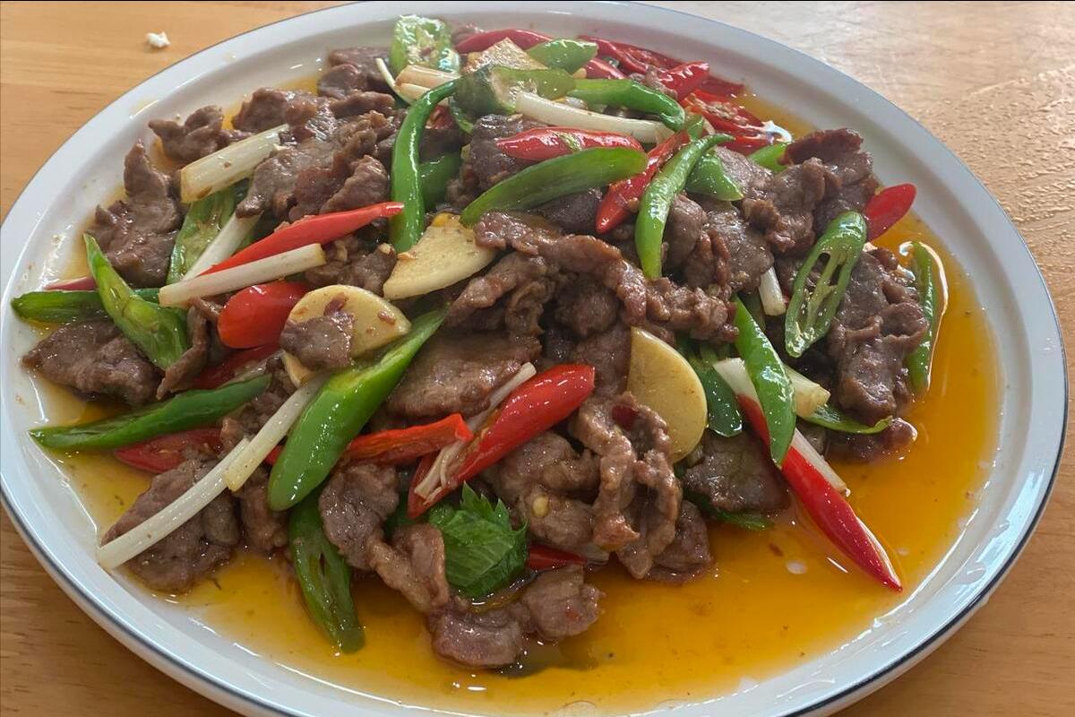 食材:牛肉、小米椒、蔥薑蒜、香菜、食鹽、味精、白糖、生抽、老抽、蠔油、料酒、澱粉