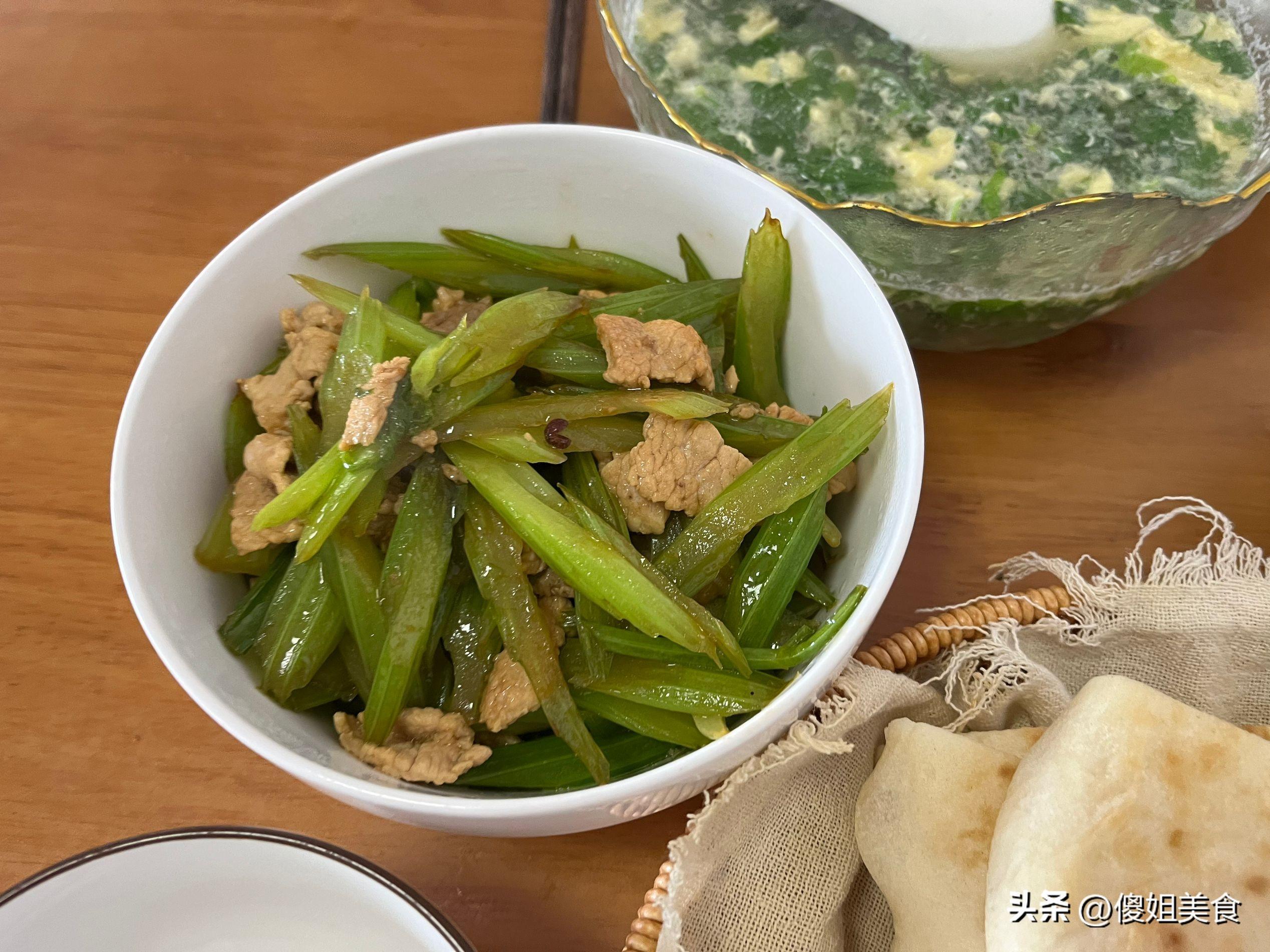 在老家趕集的時候買了一些豬肉,每次我都是在家買豬肉喫,家裏賣的豬肉不注水,喫起來也香。兒子不喜歡喫肥肉,我特意買的精瘦肉,這種比較貴點,16一斤。正好老媽給帶了一些芹菜,早上我就拿芹菜炒了個豬肉,炒的時候少放了點鹽,清淡爽口,芹菜特別的清脆,很好喫,賊鮮美。