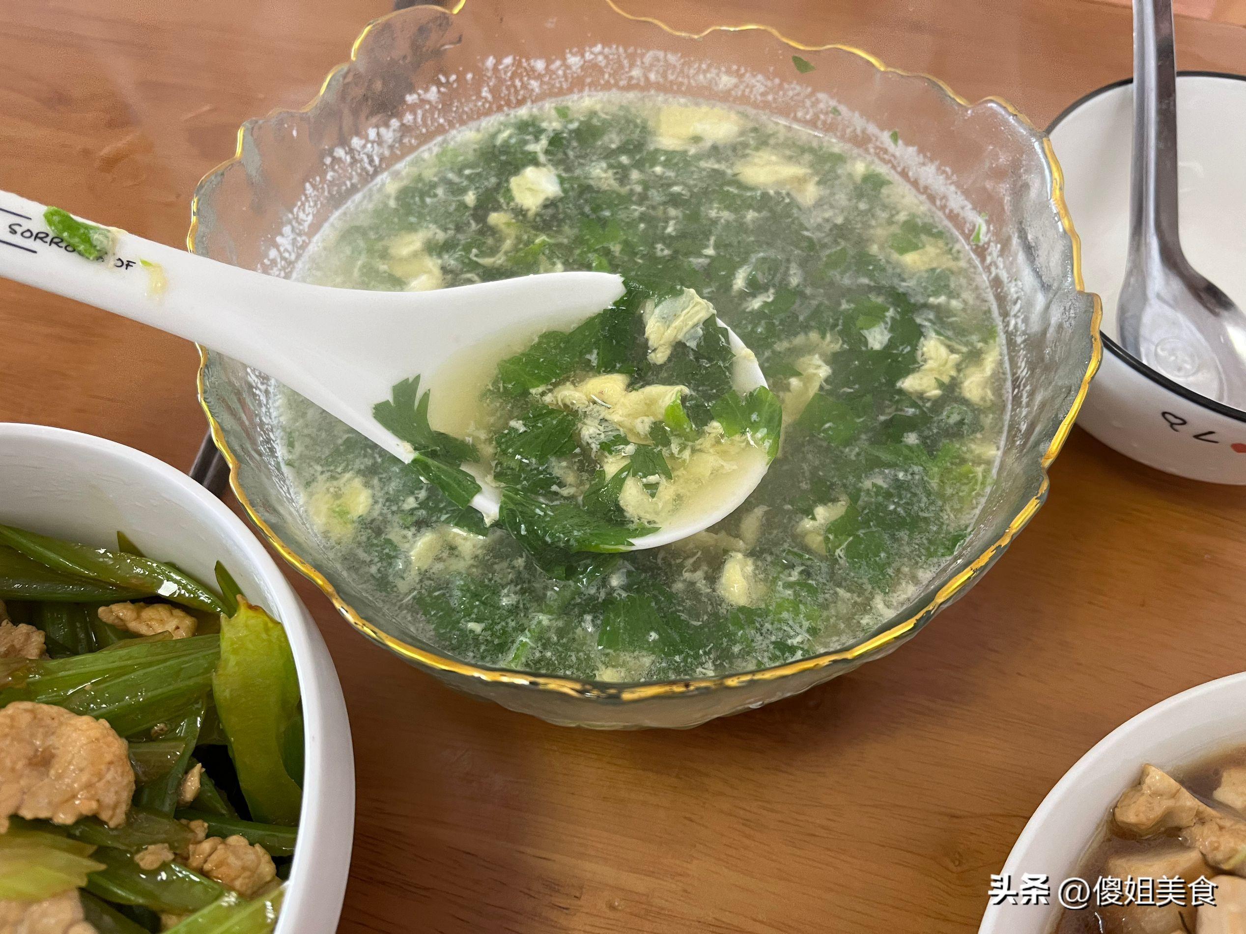 每天早上不是熬粥就是做雞蛋湯,反正是每天換着樣的做,今天是做的芹菜葉雞蛋湯,擇芹菜的時候葉子沒有扔掉,我就洗了洗切碎後,直接放入開水鍋中,放了點調料品,淋入了一個雞蛋液,做了個湯,很清淡爽口,比菠菜湯還好喝呢。