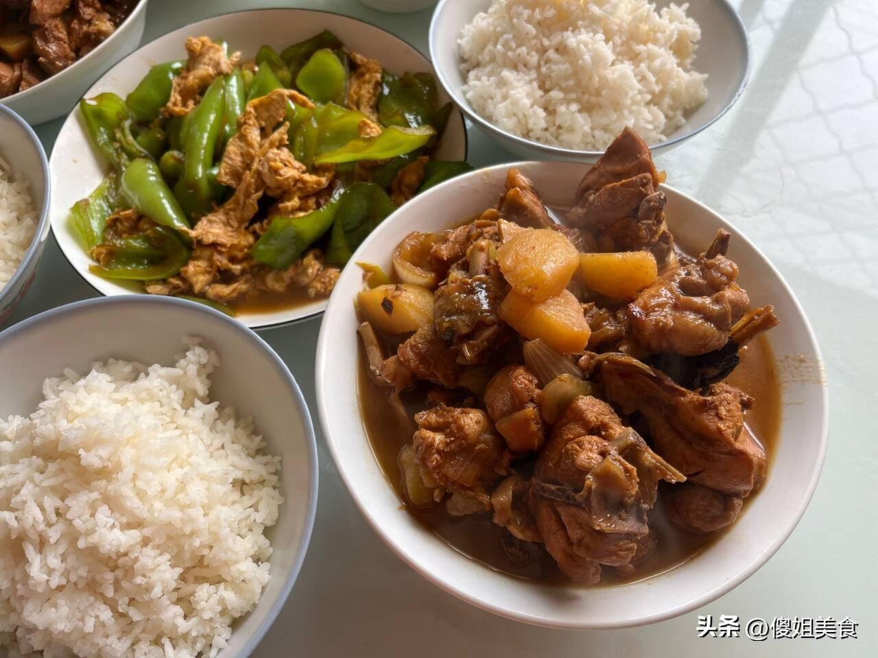 我們到家時大姑姐和外甥兩個人已經到了,幾個孩子見面就開始有說有笑,孩子們在我們面前沒啥話,可是他們卻有說不完的話。我剛進院子就聽見婆婆在剁雞肉的聲音,看來中午給我們燉我最愛喫的雞肉。真沒猜錯,婆婆說一大早她就去鎮上買白條雞了,忙活了一大早。婆婆中午飯燉了只雞,炒了青椒炒蛋,主食是大米飯,蠻豐盛的。我拿出手機炫耀了一下婆婆的手藝,在朋友圈火了,網友:家裏有礦,喫不起!下面把我家賢惠婆婆做的午餐飯也分享給大家,一起來看看吧。