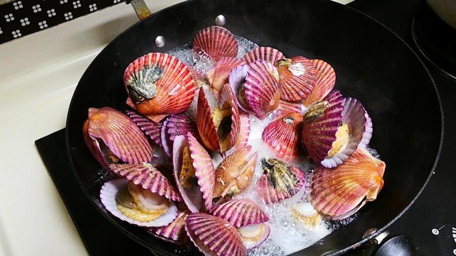 1.首先選取新鮮肥美的扇貝適量,用刷子仔細刷洗乾淨表面的灰塵和雜質,然後起鍋不用加水,倒入扇貝,再加適量的料酒去腥,蓋上鍋蓋煮至扇貝開口後即可關火,把扇貝撈出晾涼後,取出扇貝肉備用。