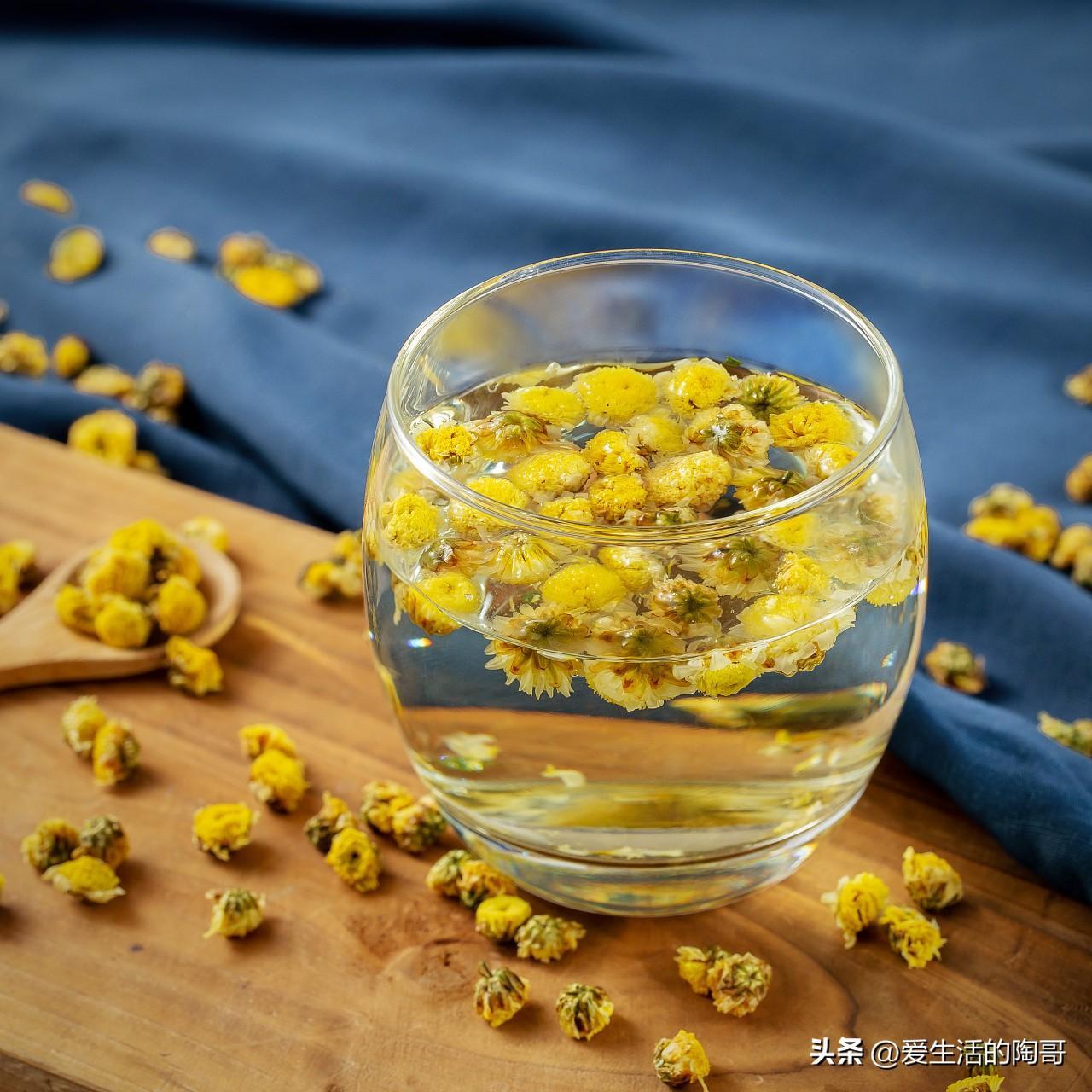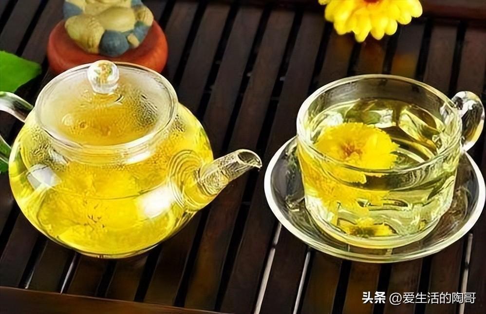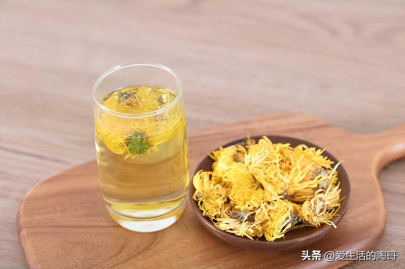泡好的菊花茶,黃澄澄,看着養眼,喝下去養生。在泡菊花茶的時候,用80℃的熱水泡最好。一般沖泡2~3遍後便不宜再用。久泡、多泡會降低其芳香氣息,